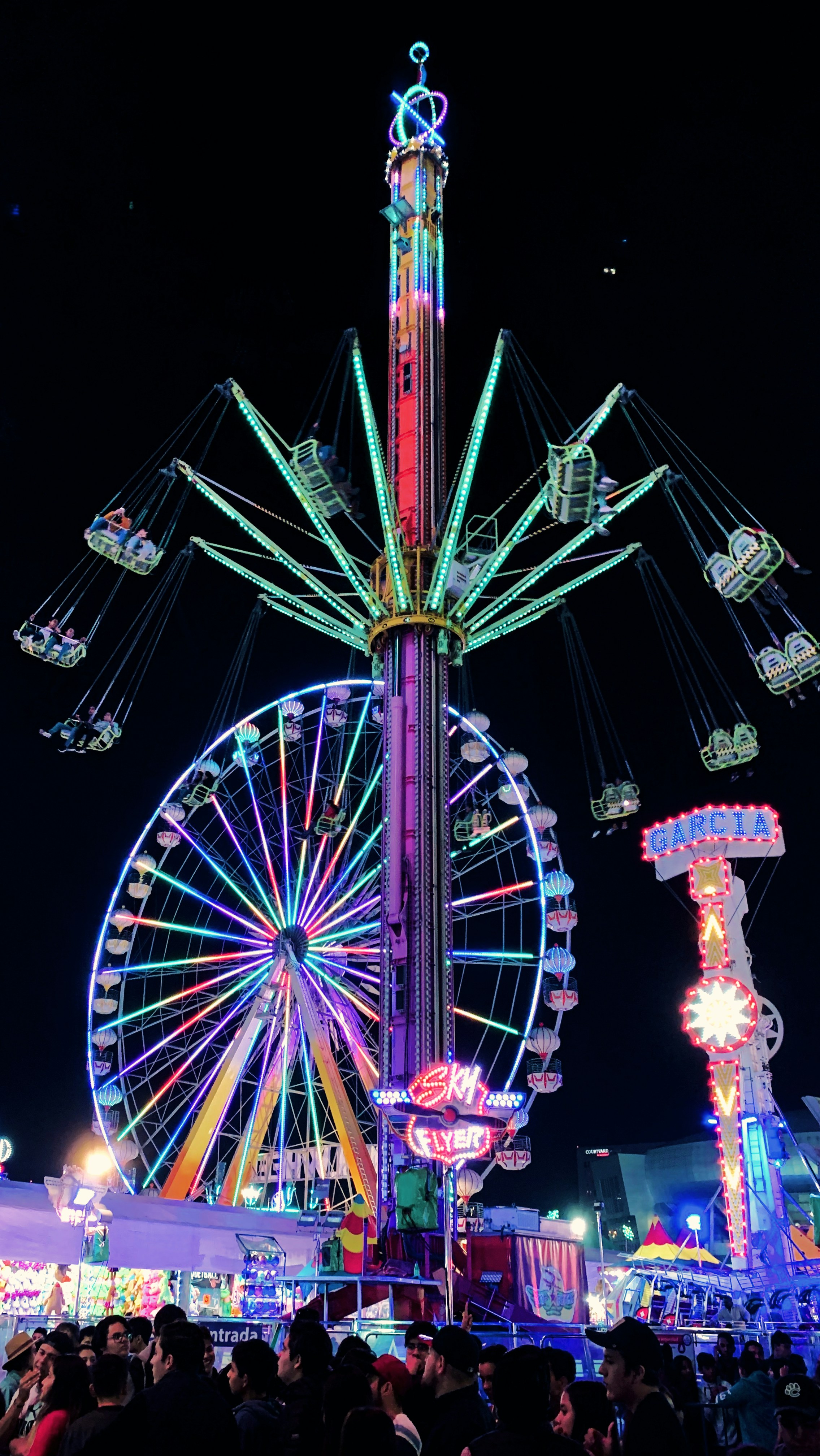 red green and blue ferris wheel