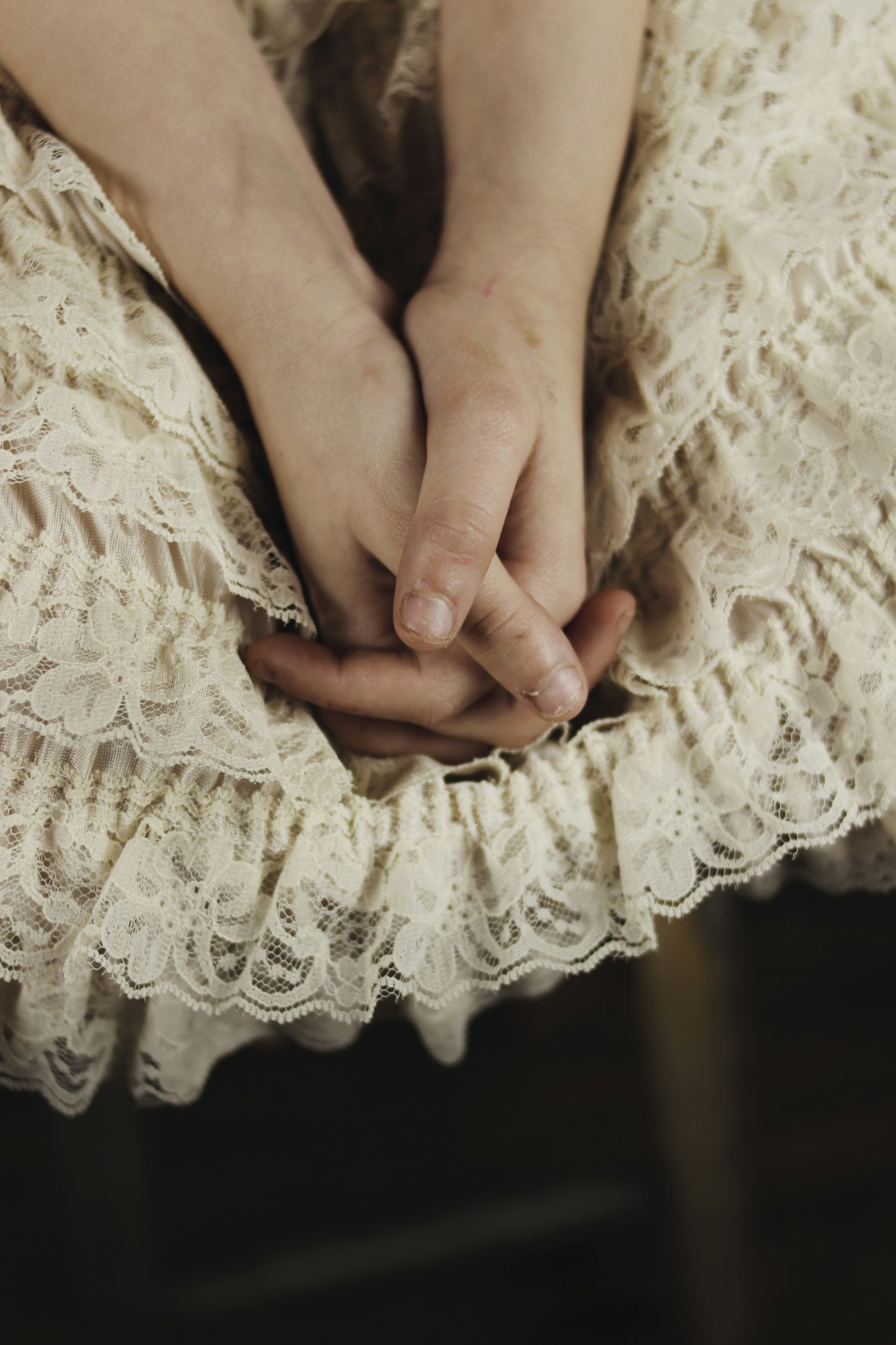 womans face with white and black floral headdress