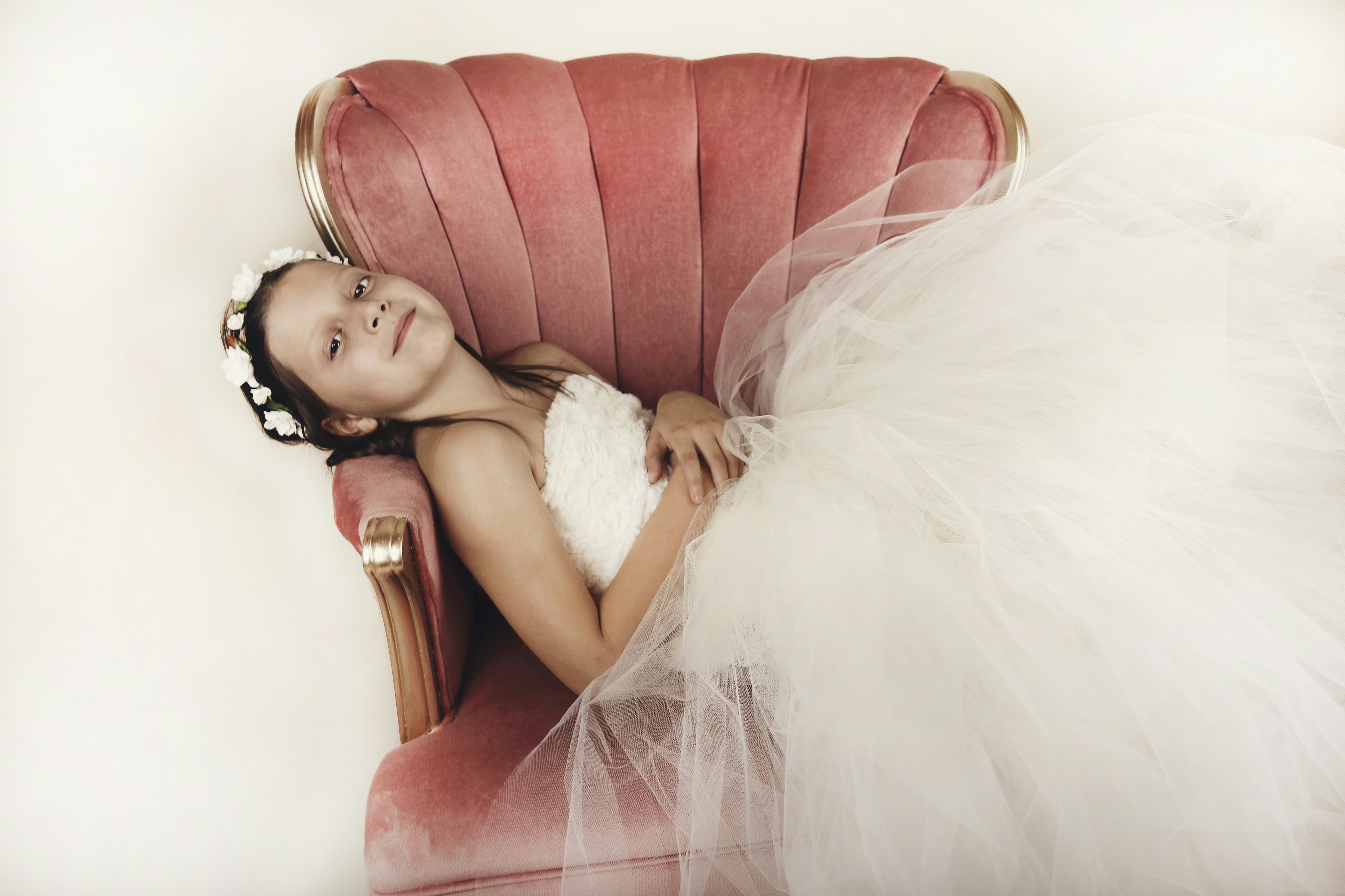 pink and white floral textile