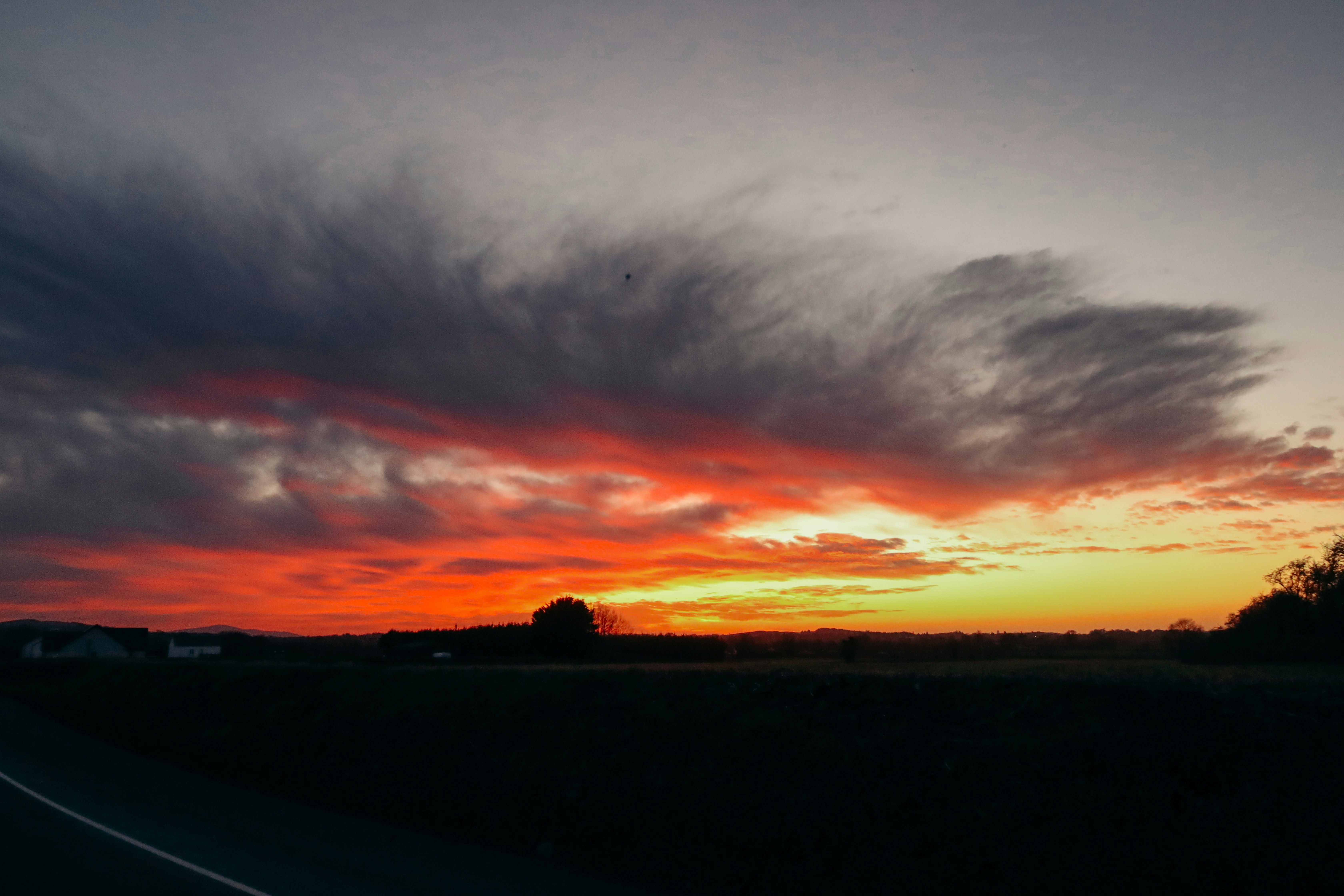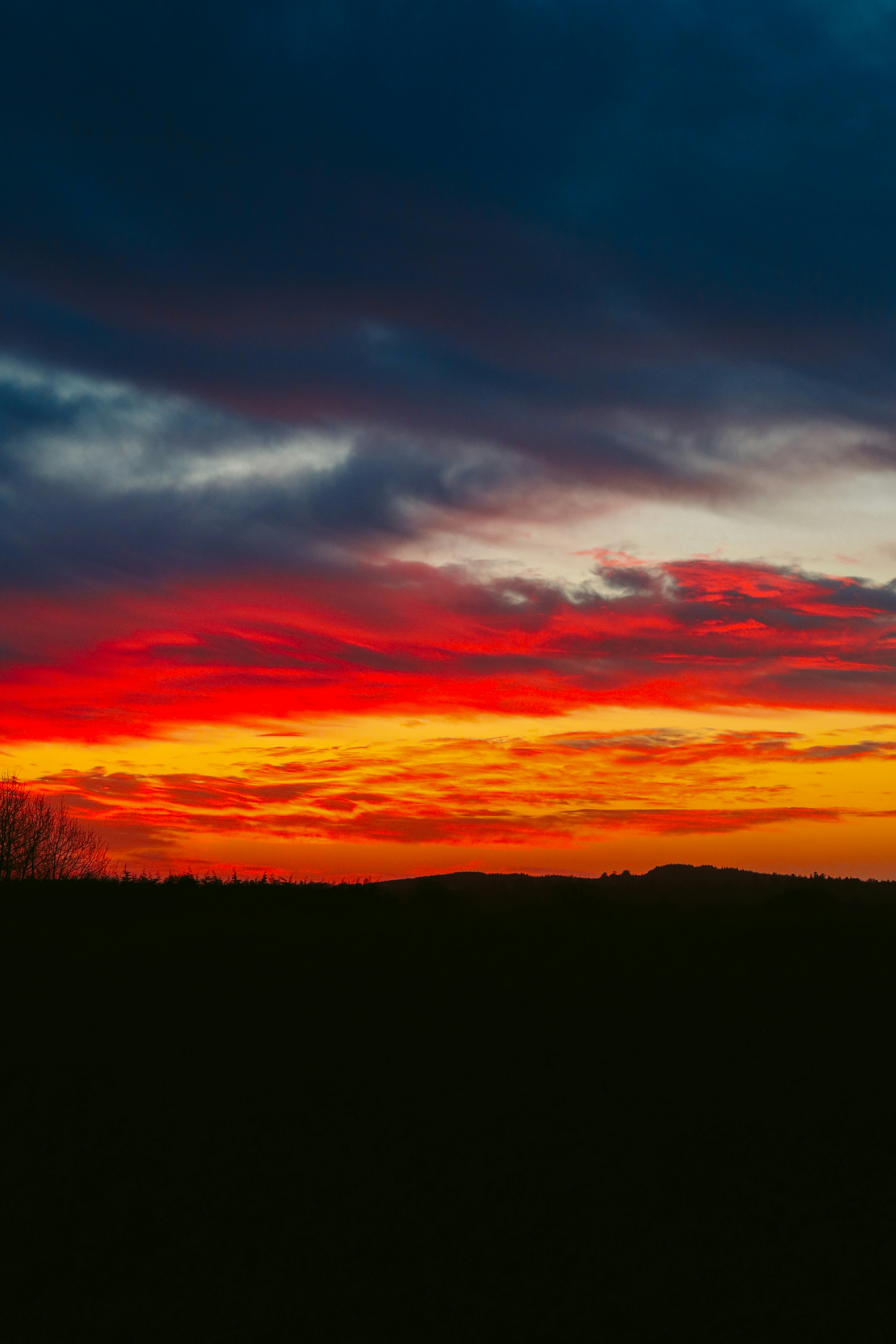 Lebendiger Sonnenuntergangshimmel mit dramatischen roten und orangefarbenen Wolken.