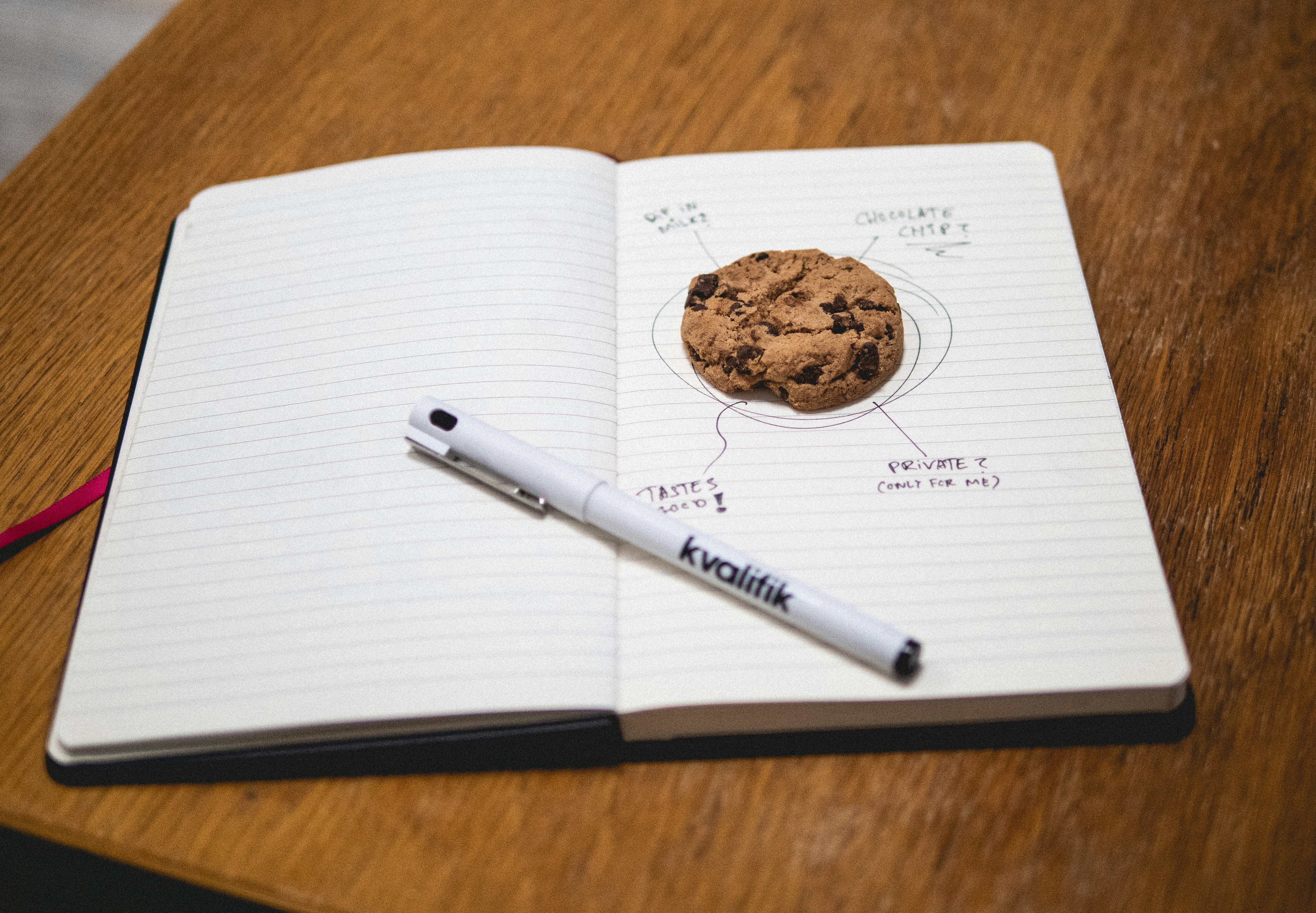 Carnet de notes et cookie