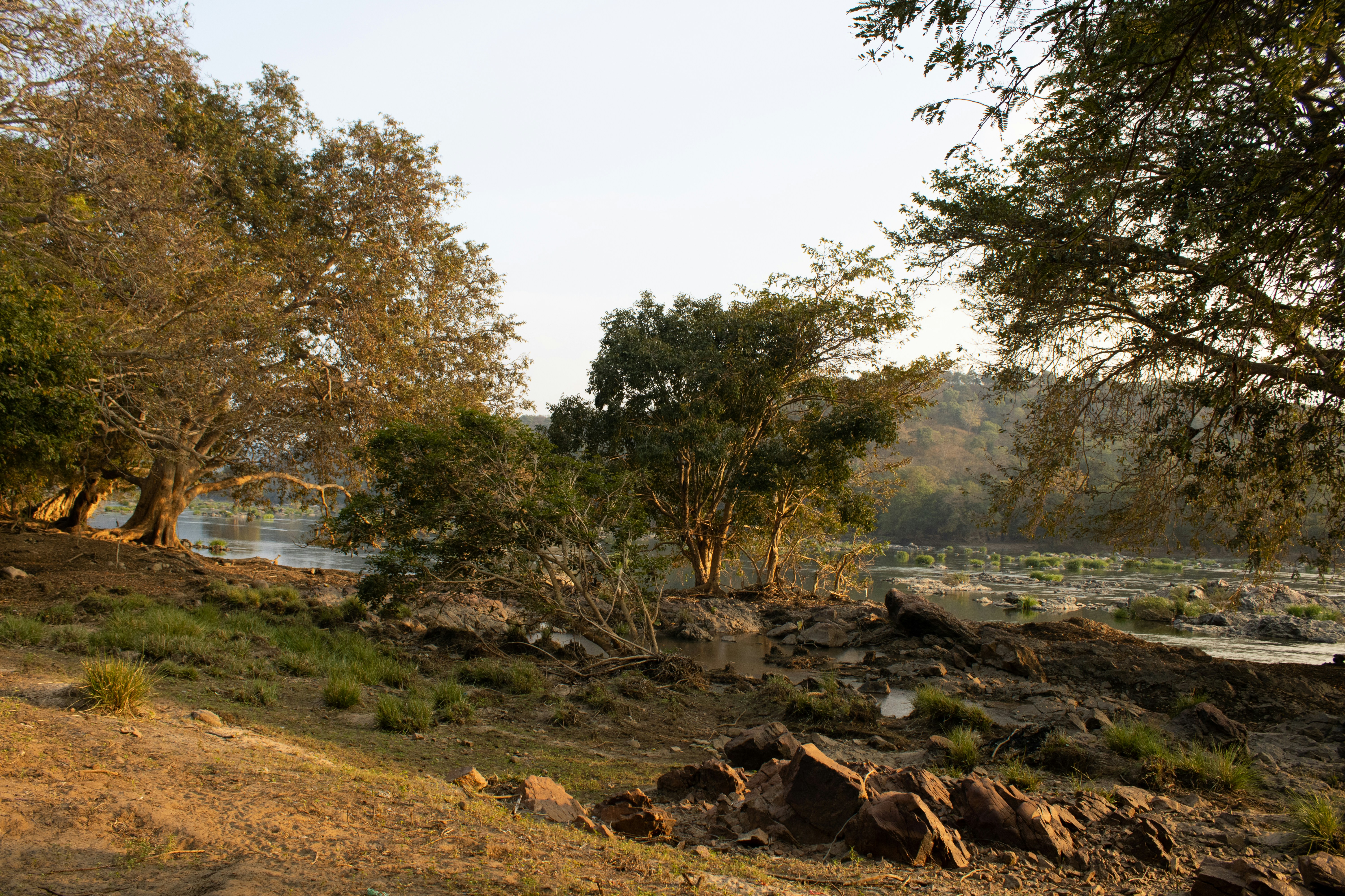 Sunset view of a river bank