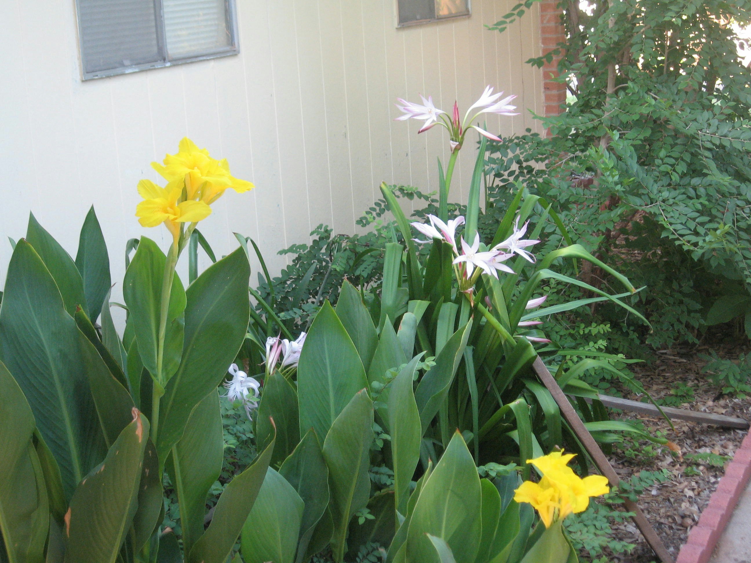 My mother had this flower bed since they moved in this house back in the 1950s in West Texas! She past away in 2008 and I lived in the house for a little while and I maintained the flower bed the best I could! These flowers and shubbery are all from what my mother had planted years ago and every year they came back!
