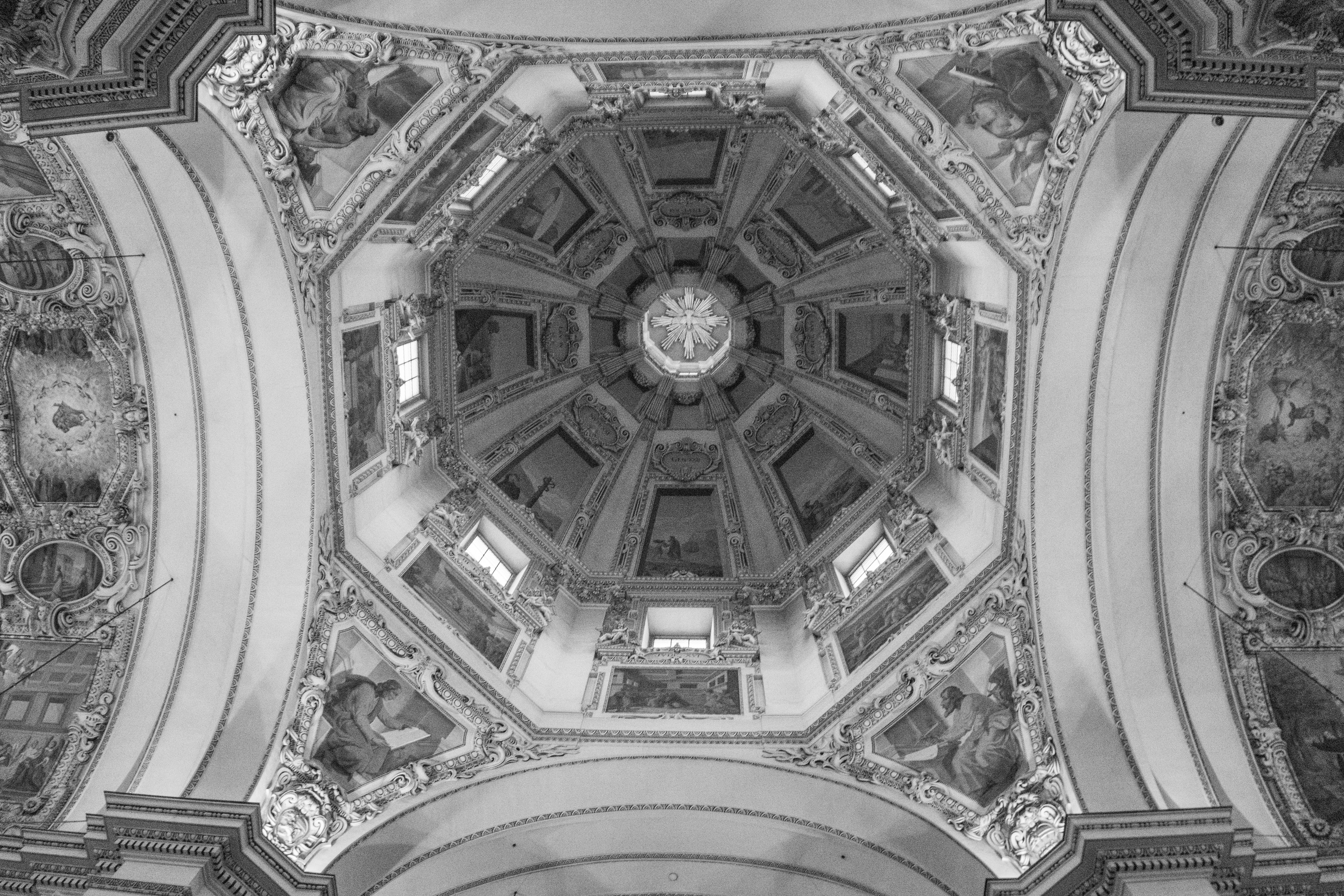 This is a shot up to the ceiling of the cathedral of Salzburg.