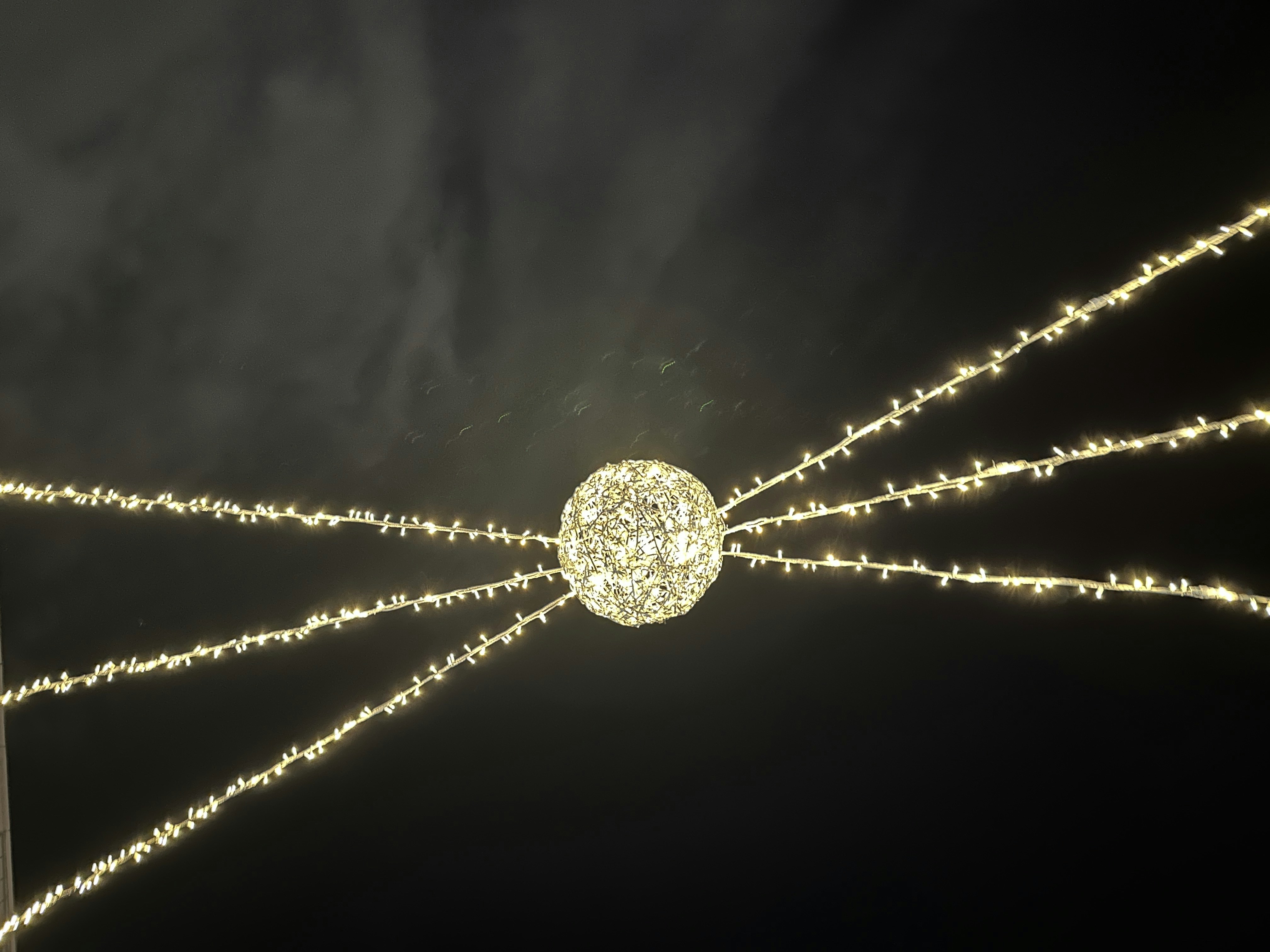 Festive lights, against the night sky.