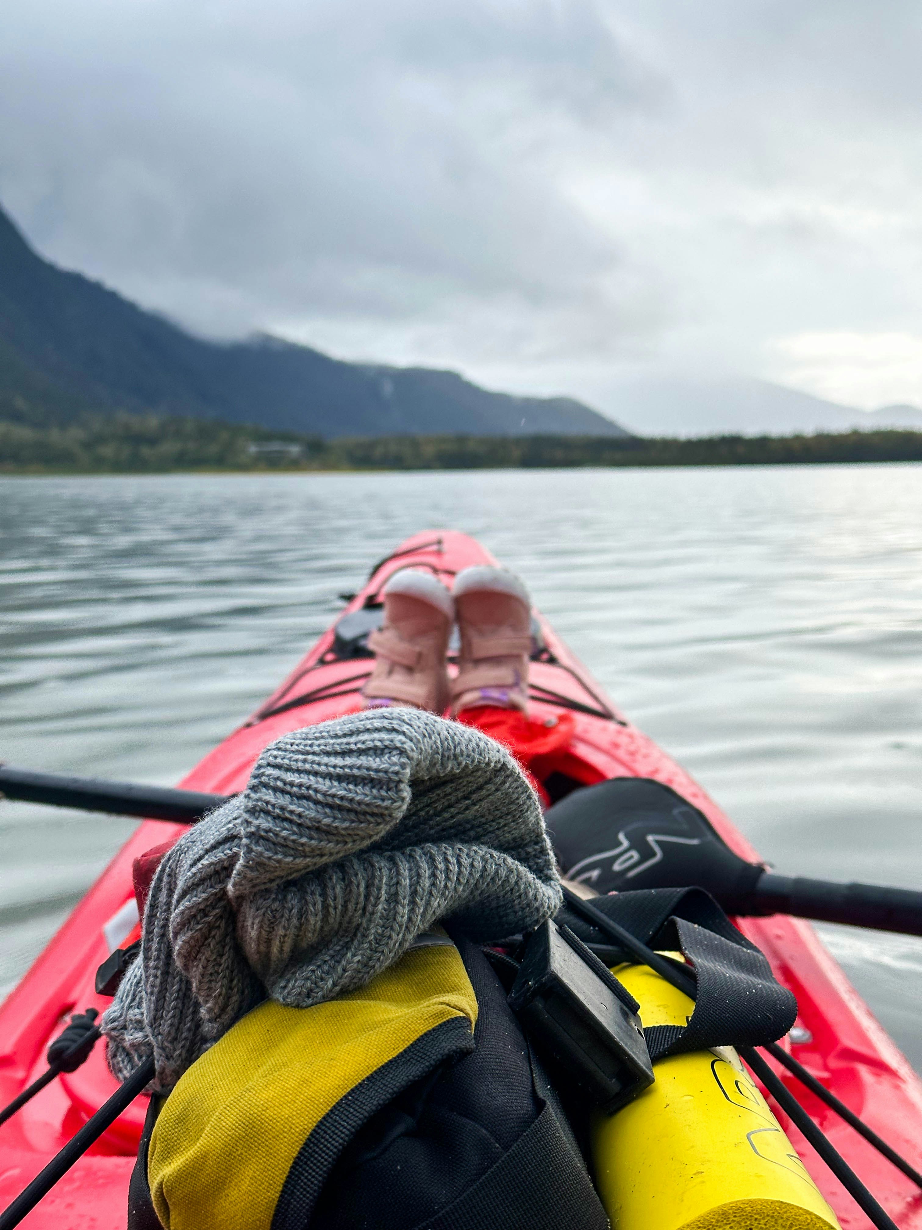Tired child's feet relaxing on the lake