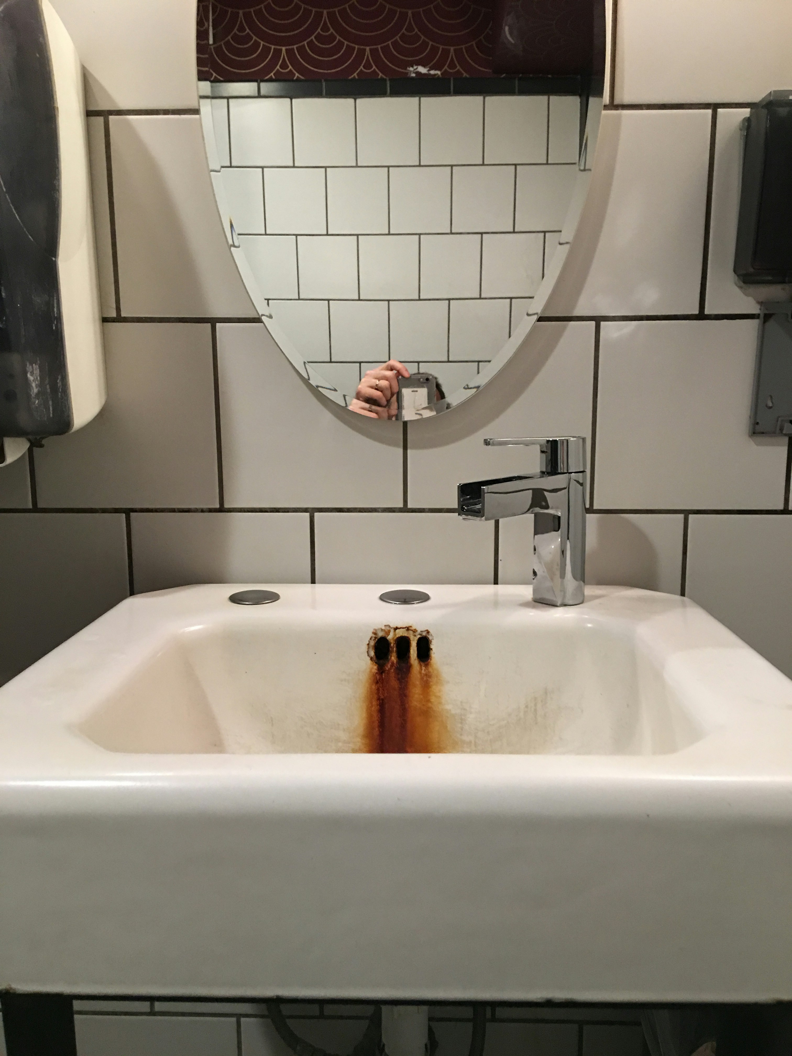 this rusty sink in an otherwise immaculate men’s room seemed somehow unexpected.