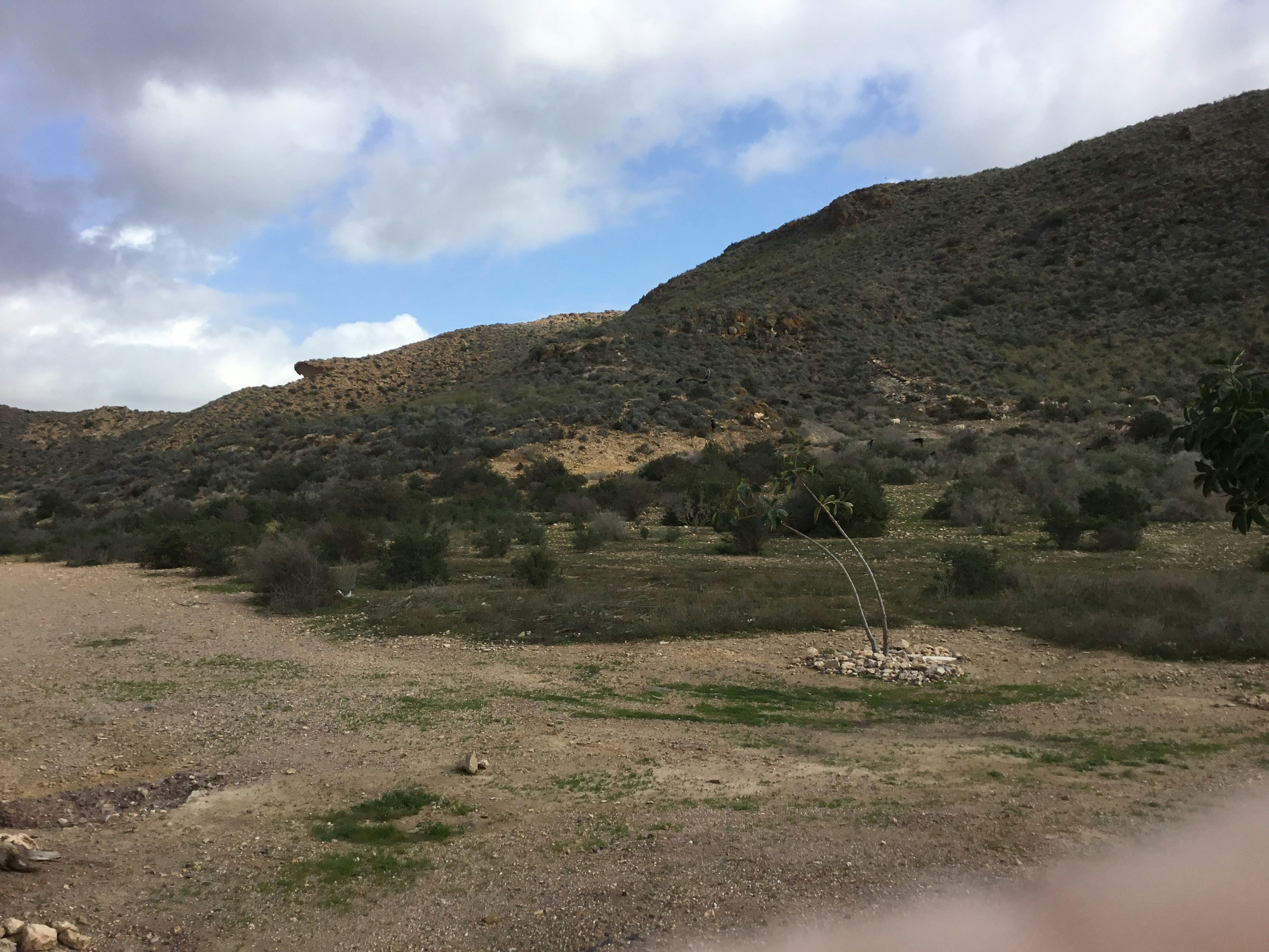 Taken from a modern poolside, a goat herder, can you see him, his ancestors must have taken this walk for thousands of years to exercise and feed their goats. We are just here for each winter. We are happy and we suspect he is too.