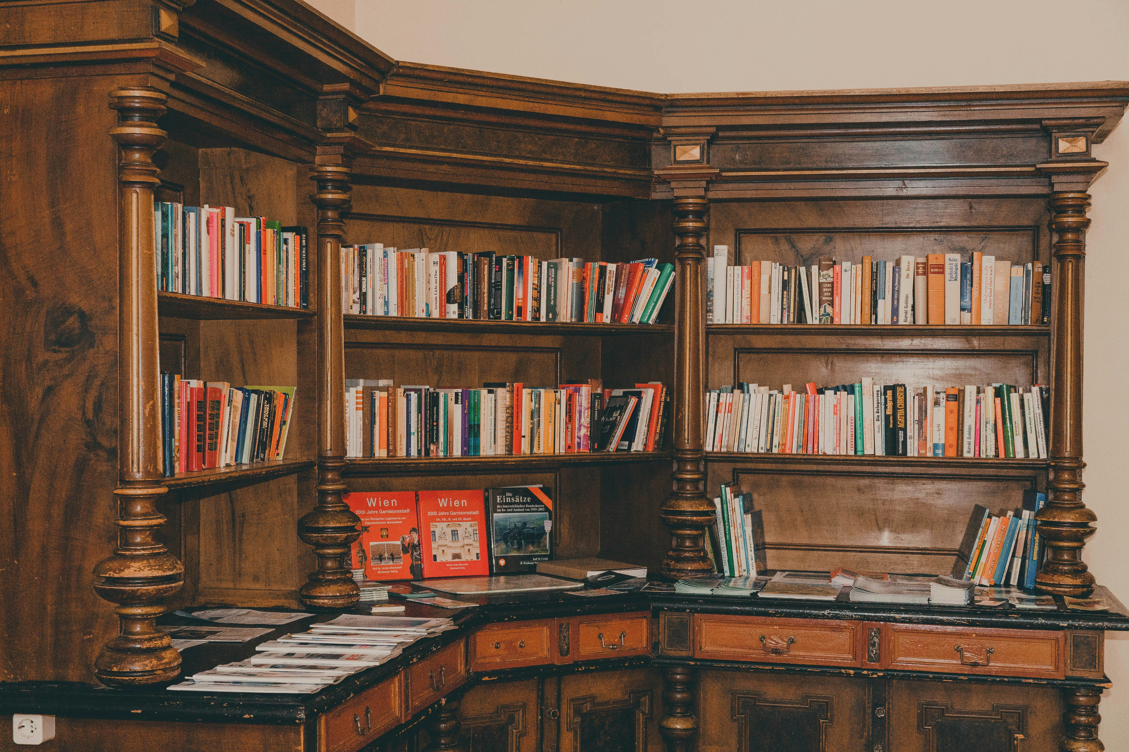 Download this free HD photo of books, vintage, bookshelf, and old in Bad Aussee, Austria by Franz Schekolin (@scheko46)