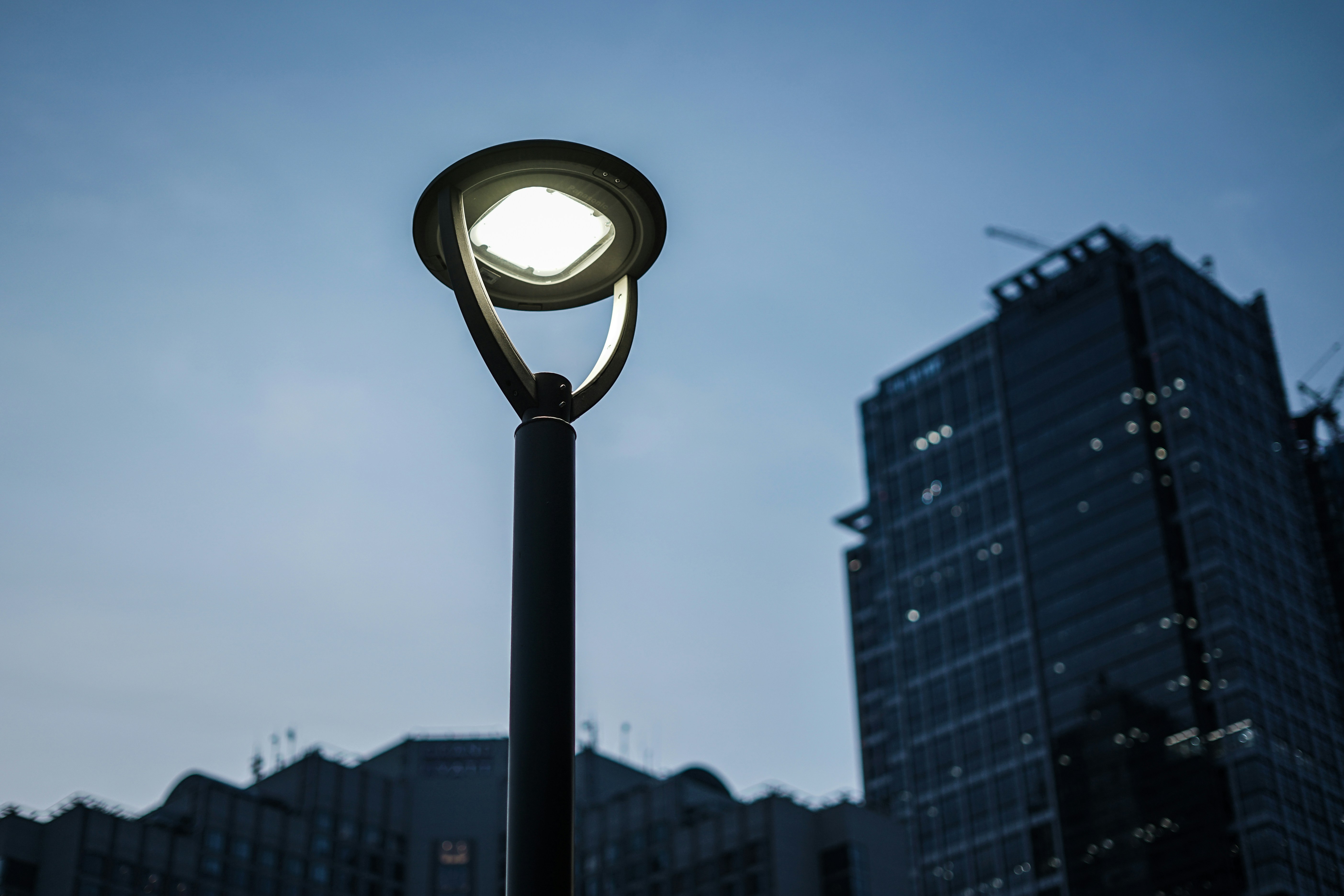 standing surrounded by a dark city.