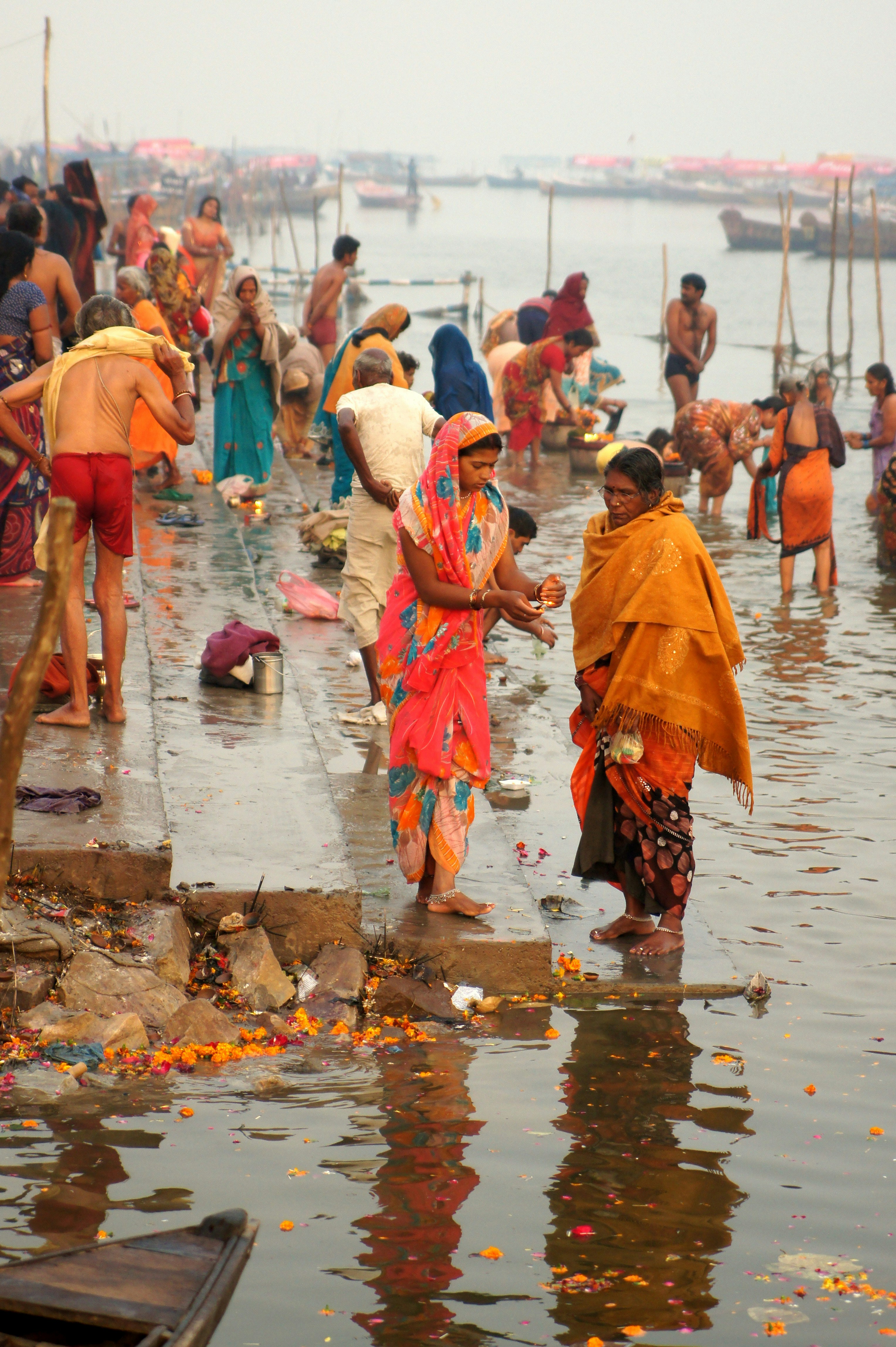 This was captured during the Kumbh Mela, that largest gathering of people on teh planet which happens every 12 years in Allahabhad, India. It was taken about 6AM as people came to do their morning prayer, and there were 100’s of thousands of people along the river bank. This mother and daughter, amidst that great crowd, had their moment of quiet togetherness
