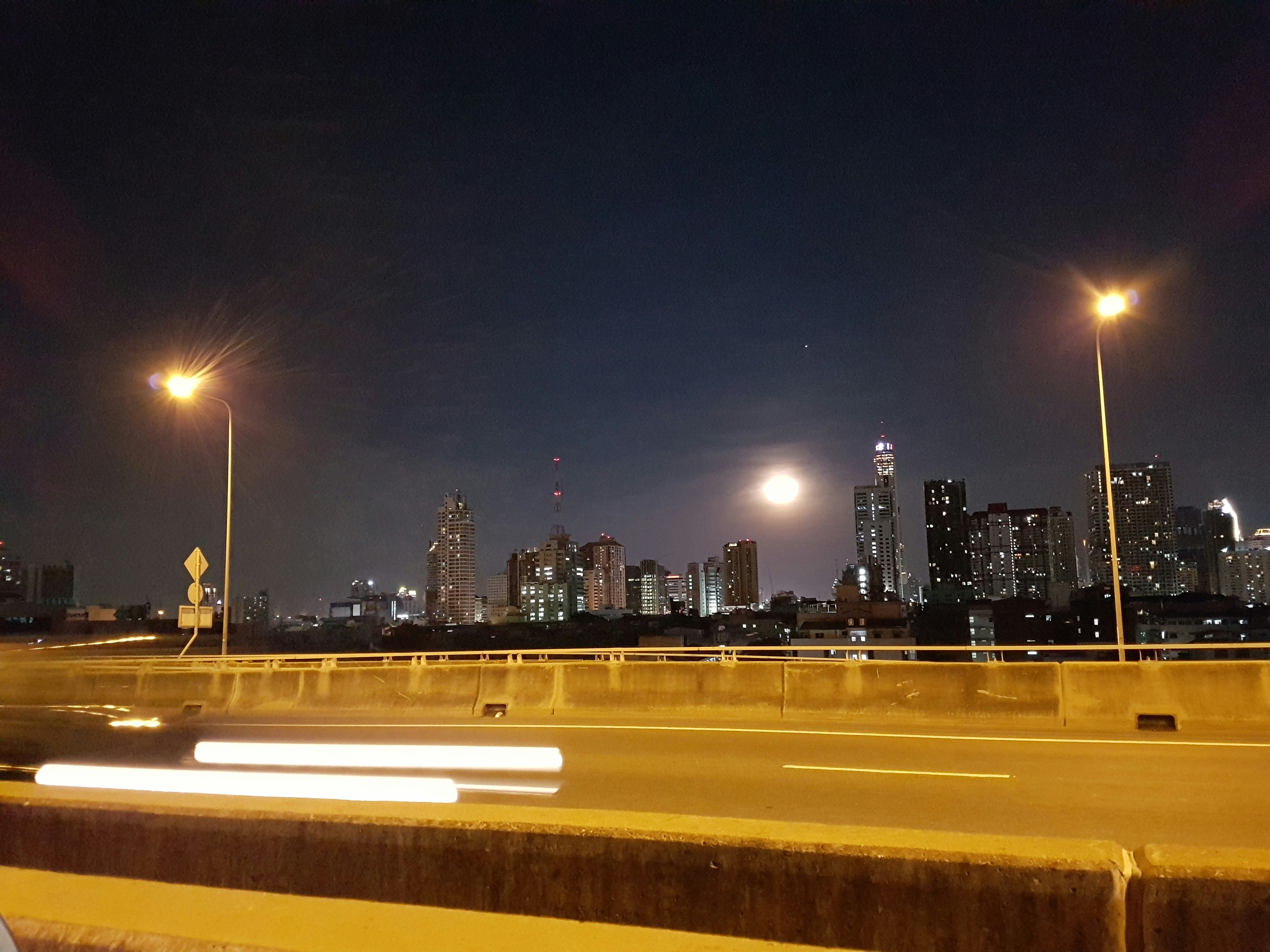 Full moon, Night Shot, Express way in Bangkok Thailand
