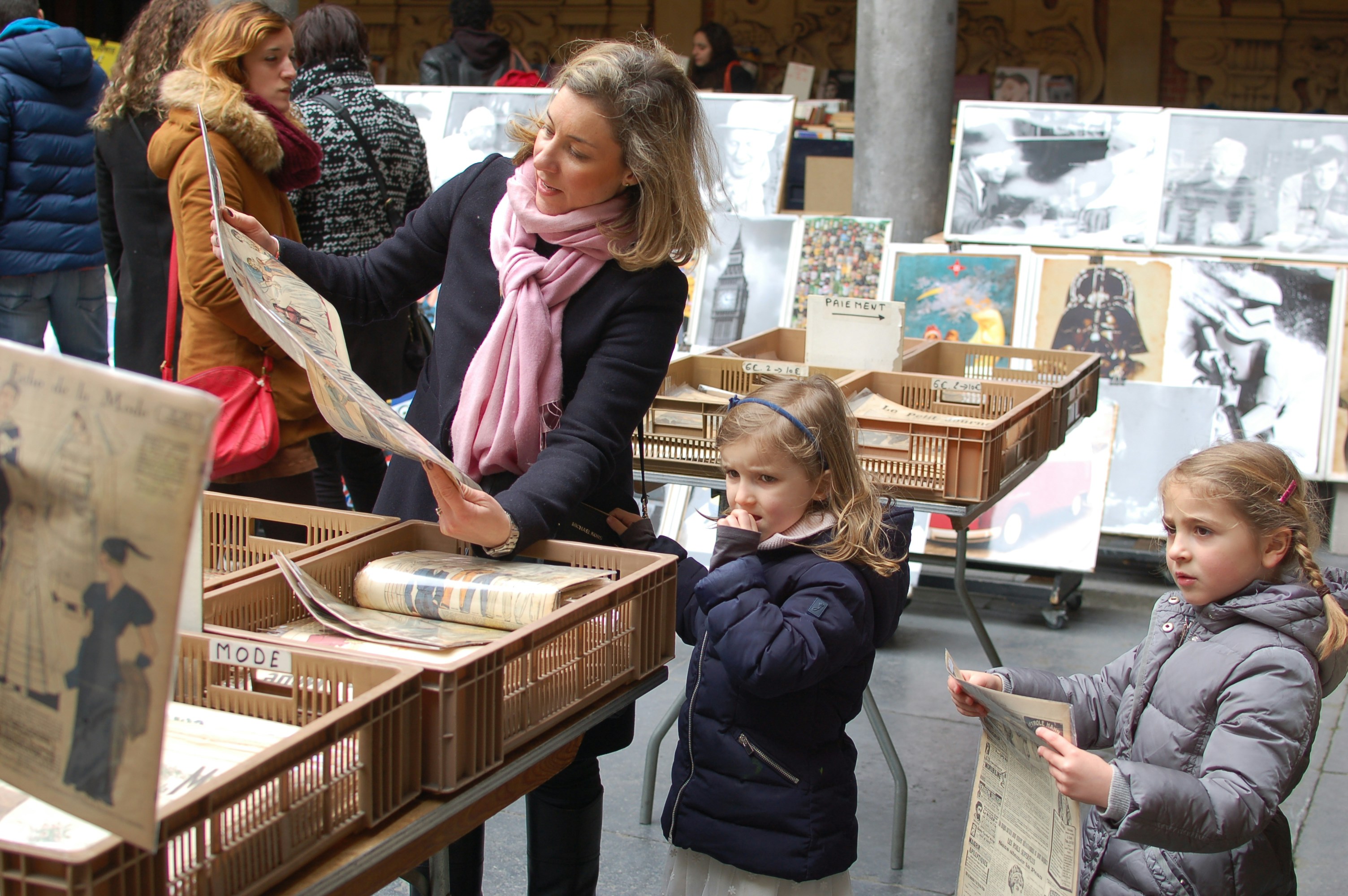 In the center of the old trading building, a little market takes place every week. Old newspapers, toy figurines and artwork get exposed as passer-by, curious, sift through the old treasures.