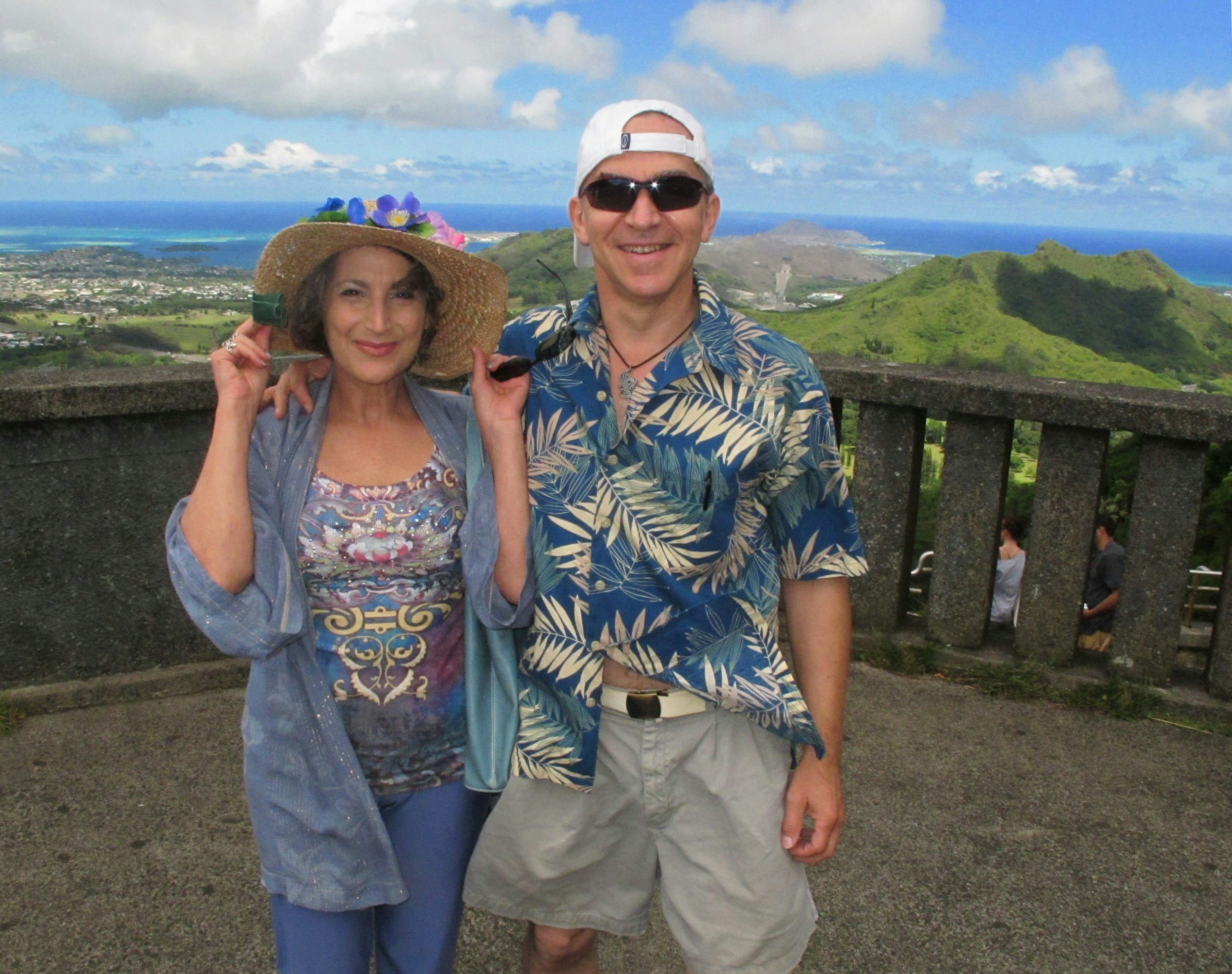 Shot on Oahu, Pacific Ocean in background. Middle-aged couple enjoying a Hawaiian vacation.
