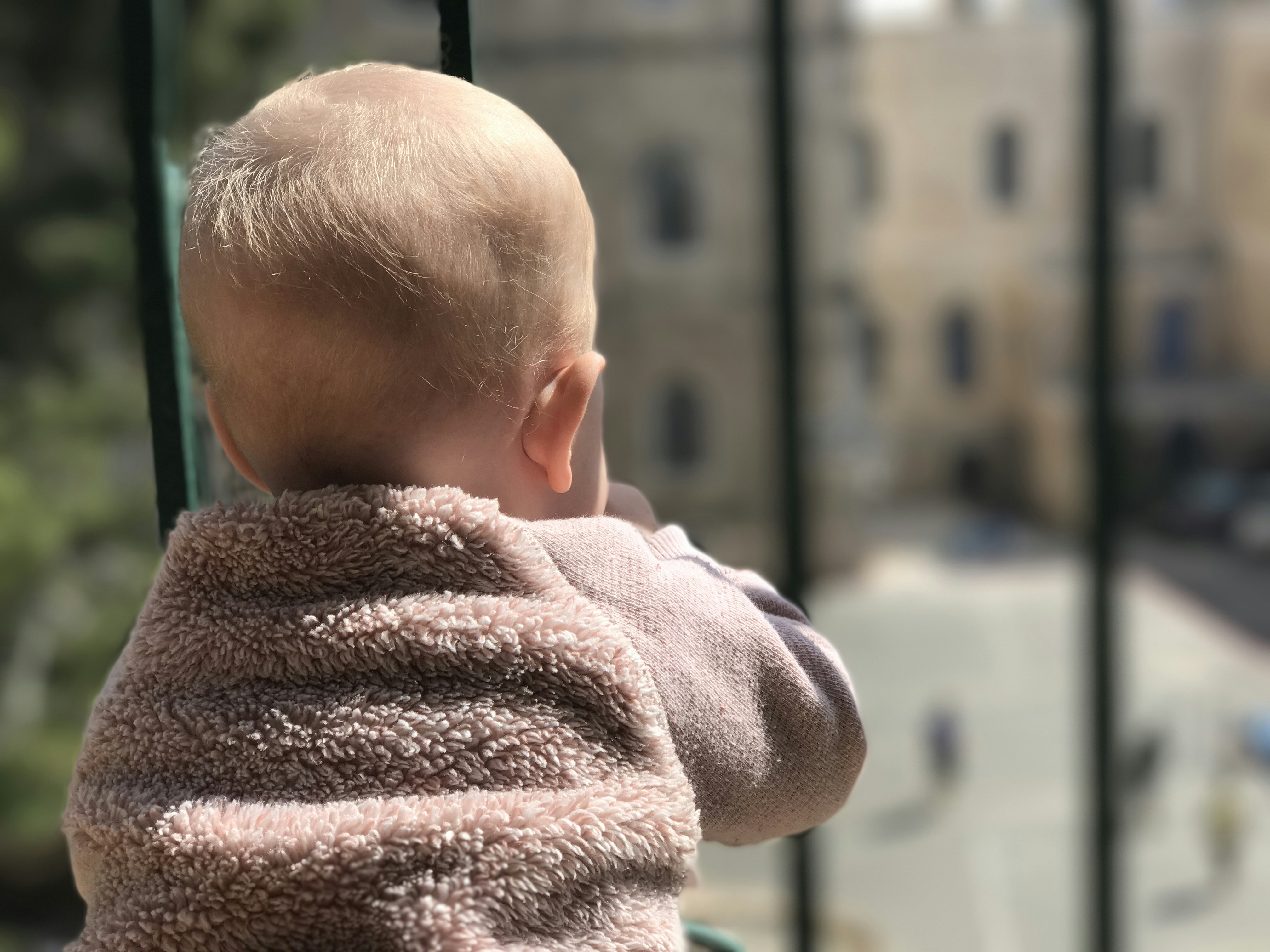 Baby girl watching from balcony