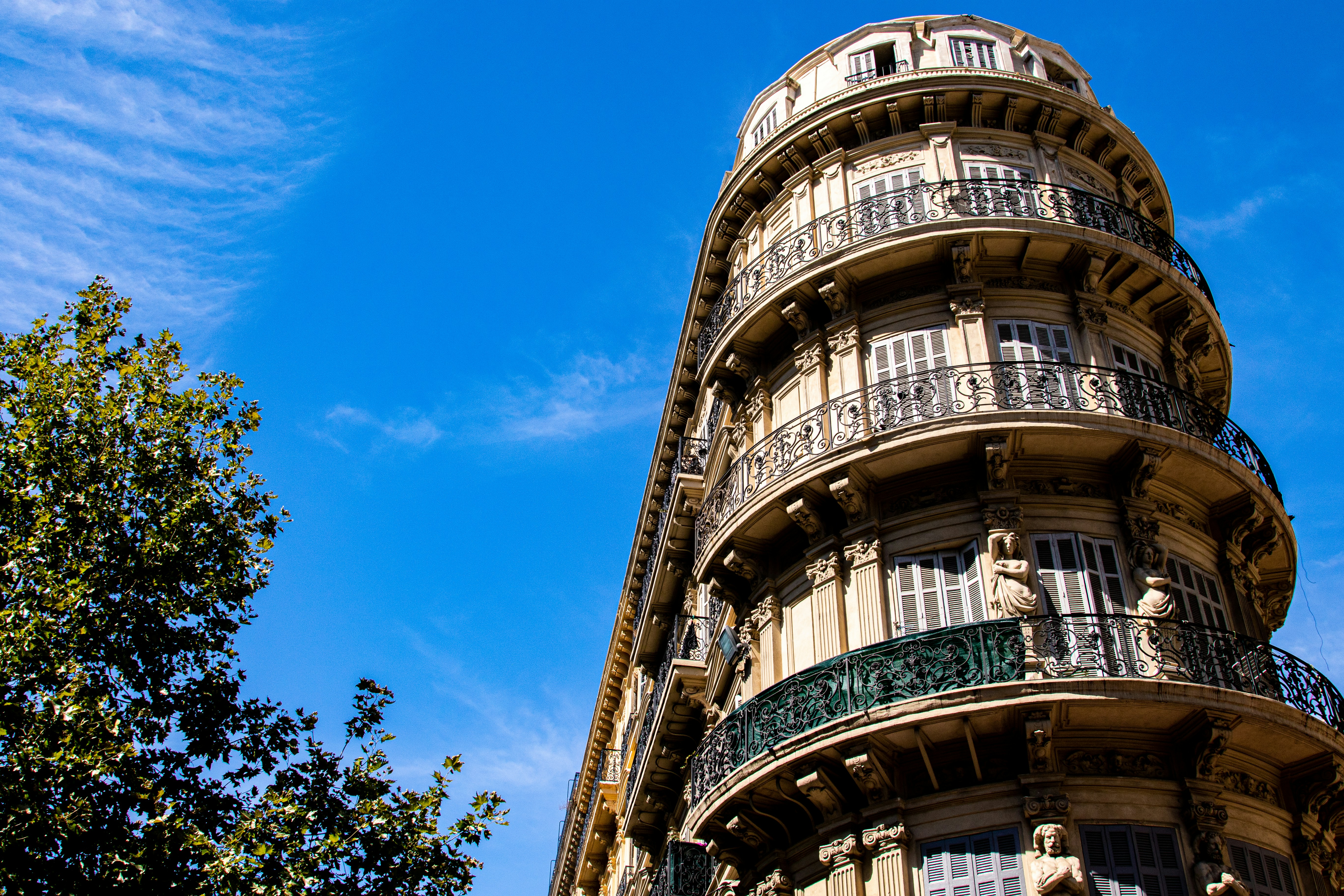 Beautiful historical fronts of houses in central Marseille with very filigran balconies.