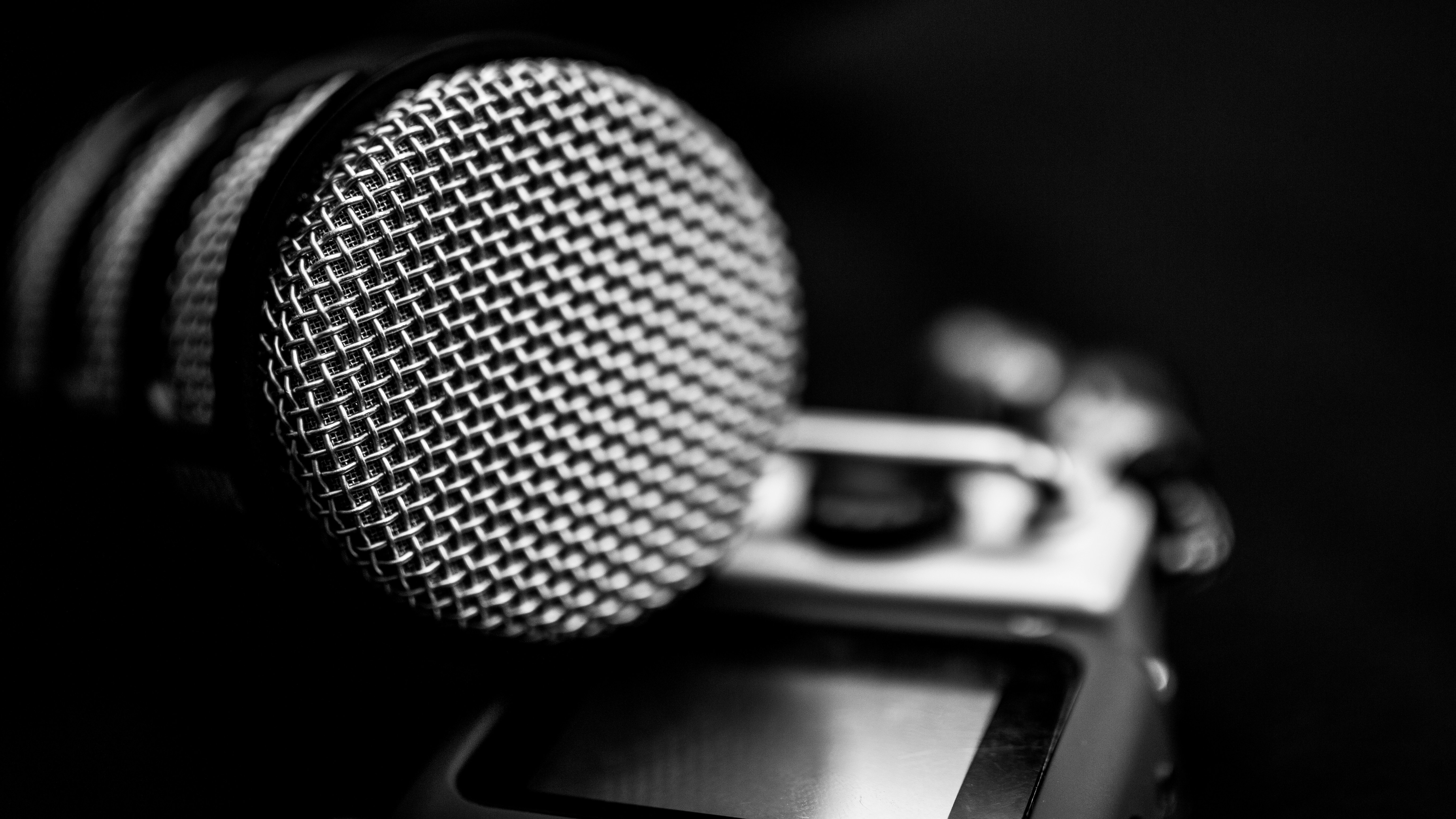 Podcast, Rode PodMic, Zoom H5, Headset, black and white