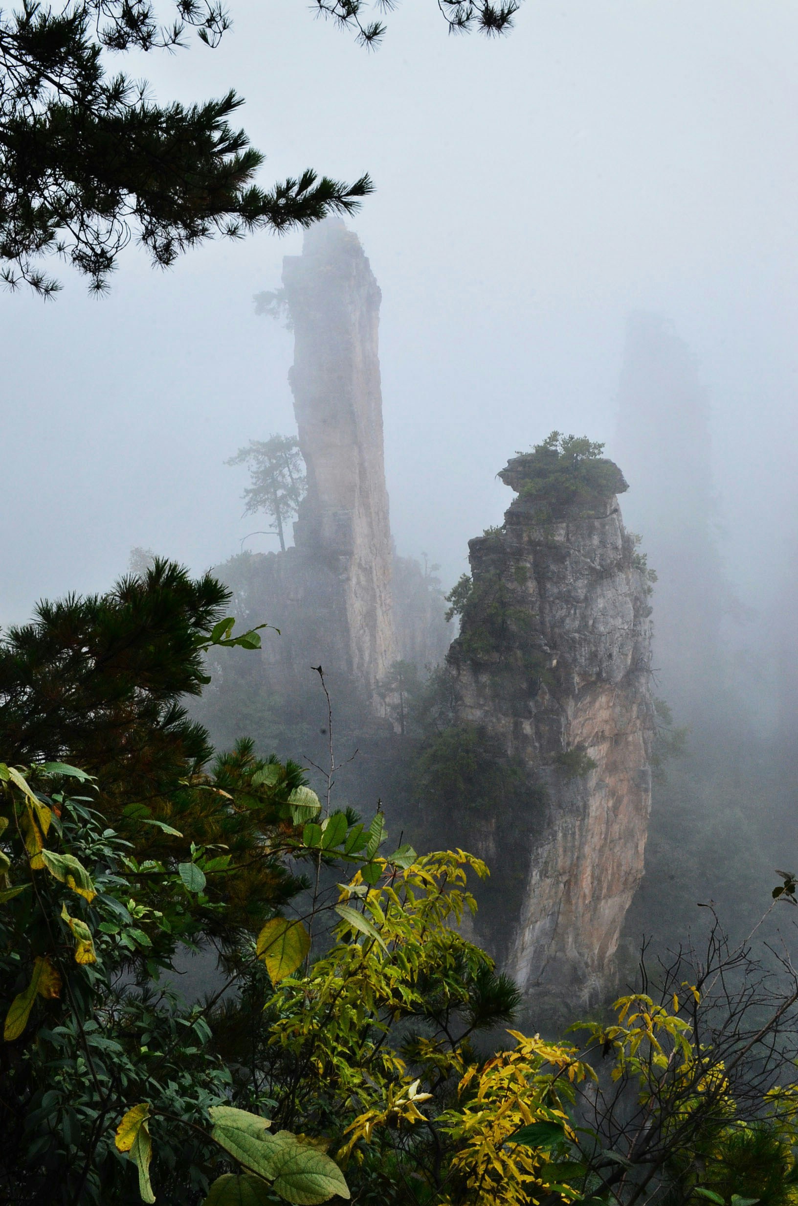 We happened to take our trip to the Zhang Jia Jie national park on a day when it was super foggy. We waited for 20 minutes at the look out for a moment when the fog would clear and from the white cloud emerged these mountain sticks.