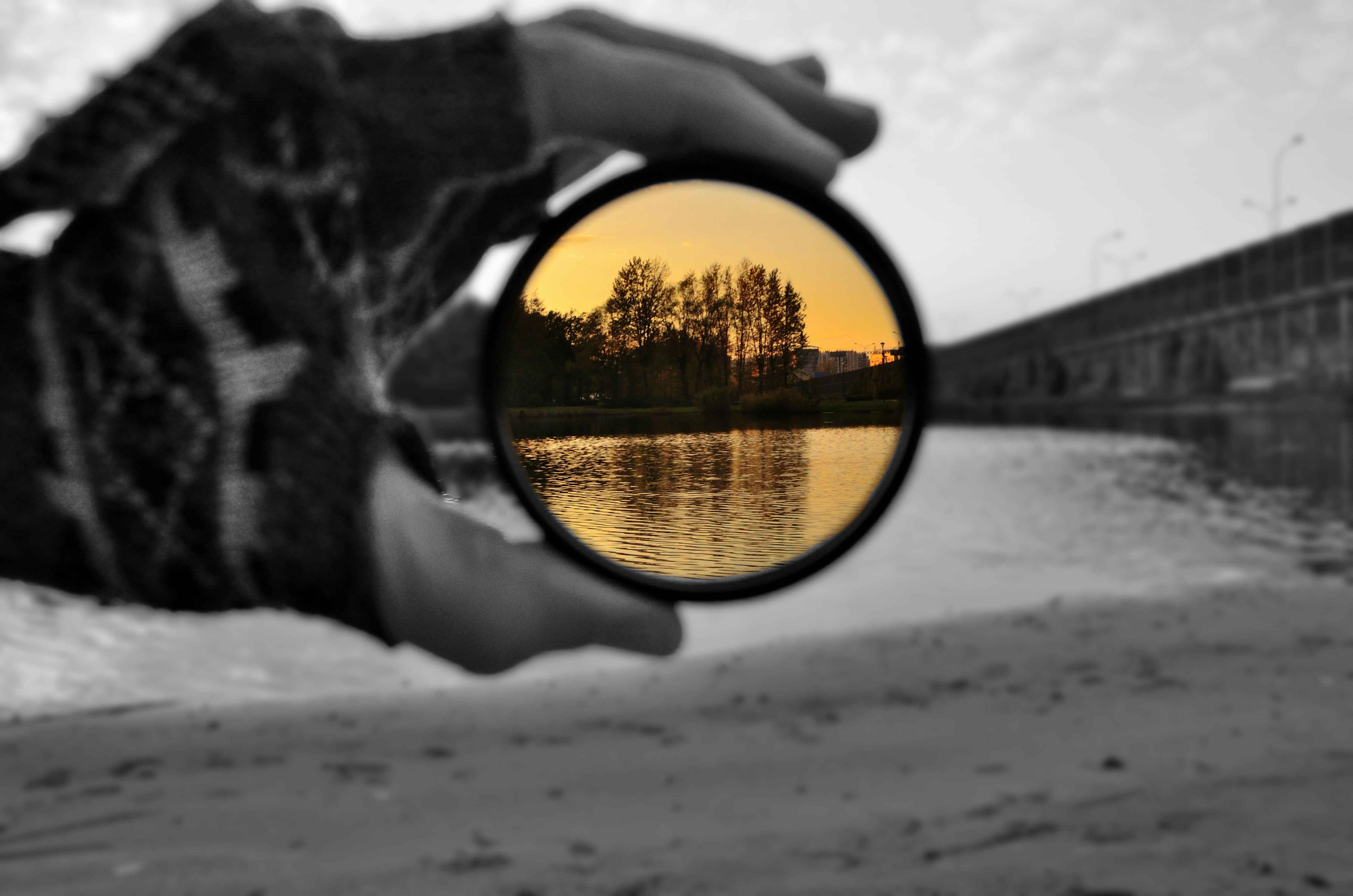 Download this free HD photo of autumn, hand, monochrome, and lens by Piotr Łaskawski (@tot87)