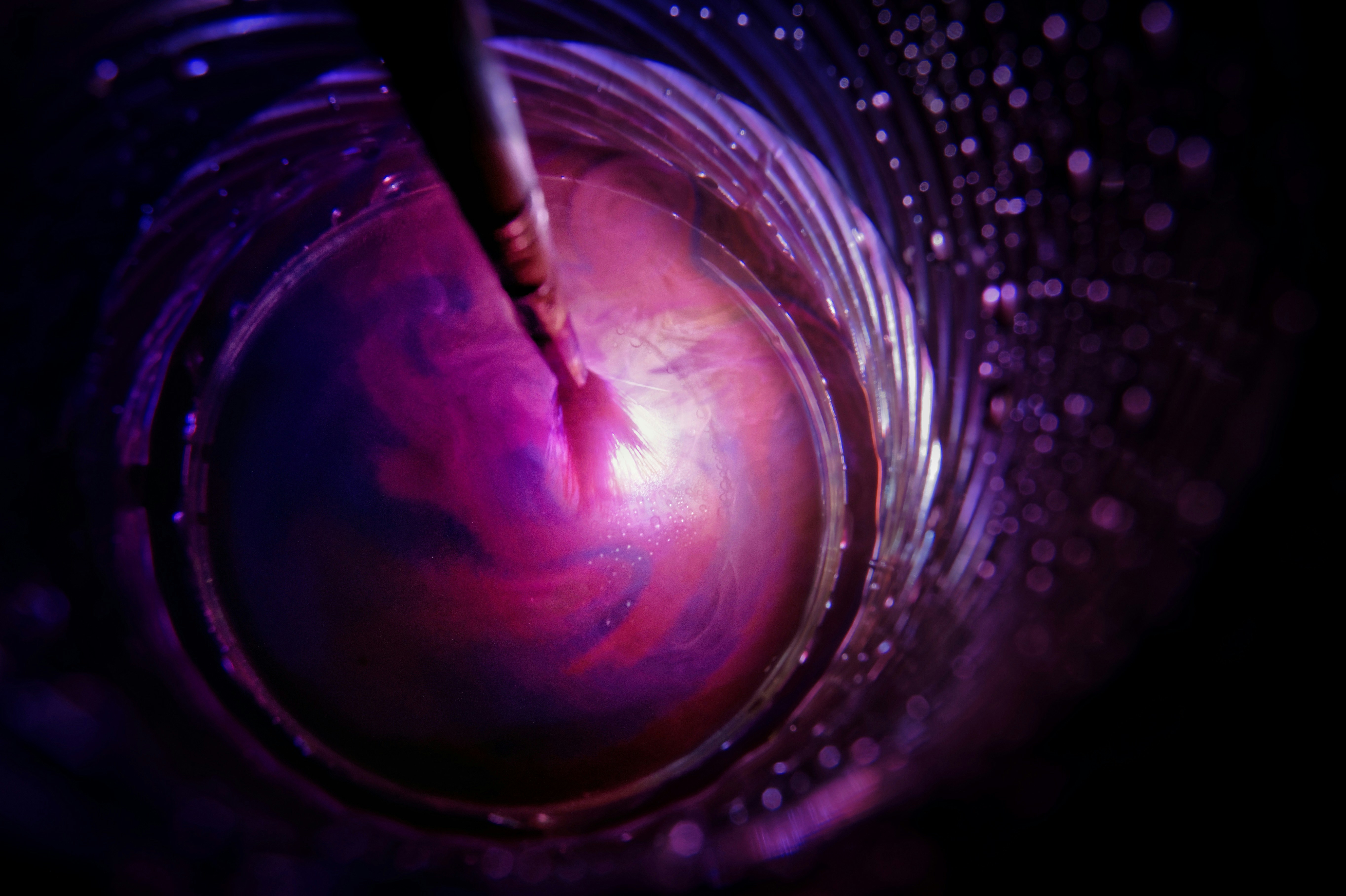 Once I saw an artist painting in the dark with a small light. There was a glass of water in a plastic cup beside him. Then I saw the colors through it and that’s it here is the photo