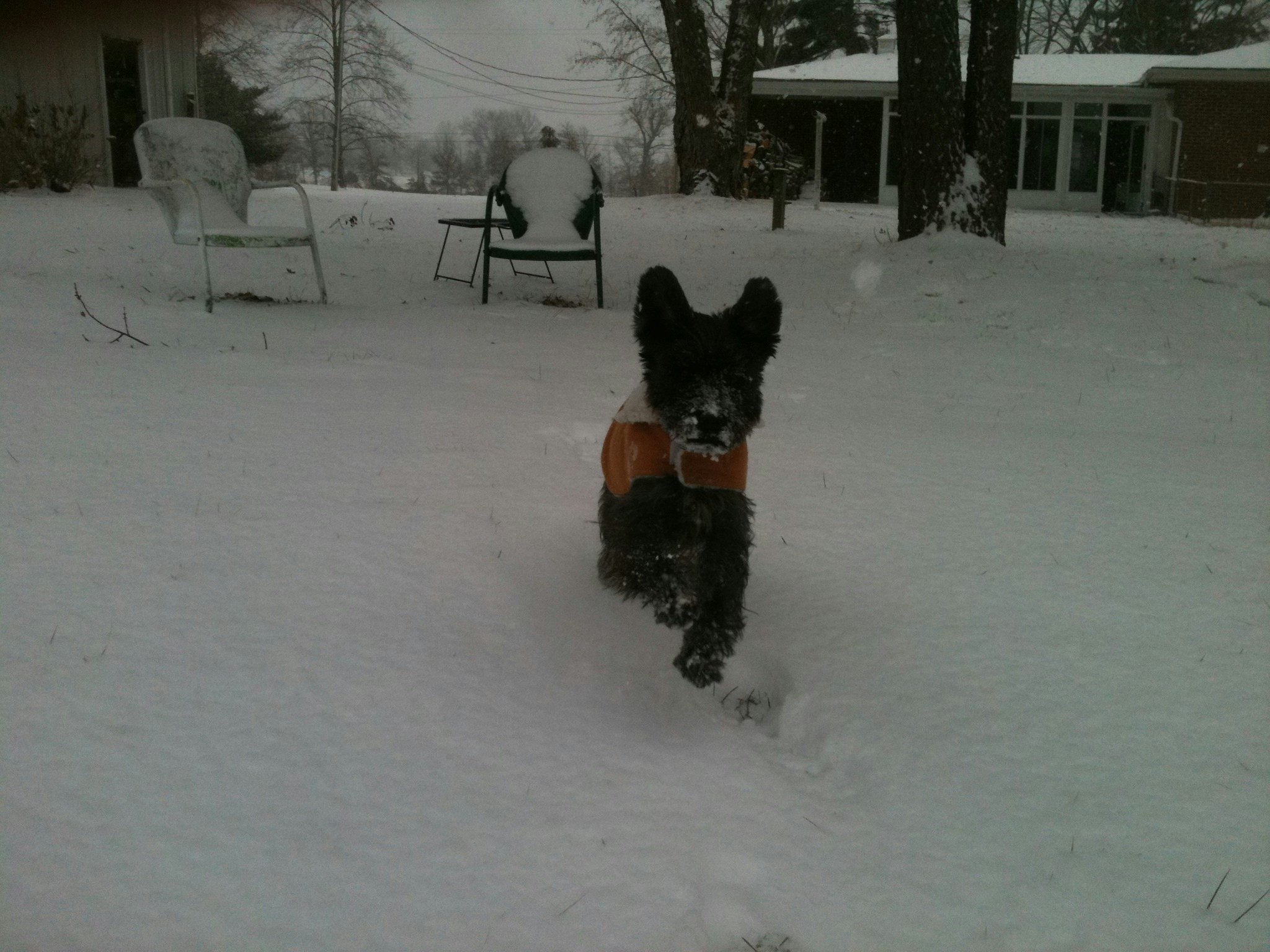 Our miniature Schnauzer Pupski running through the snow…