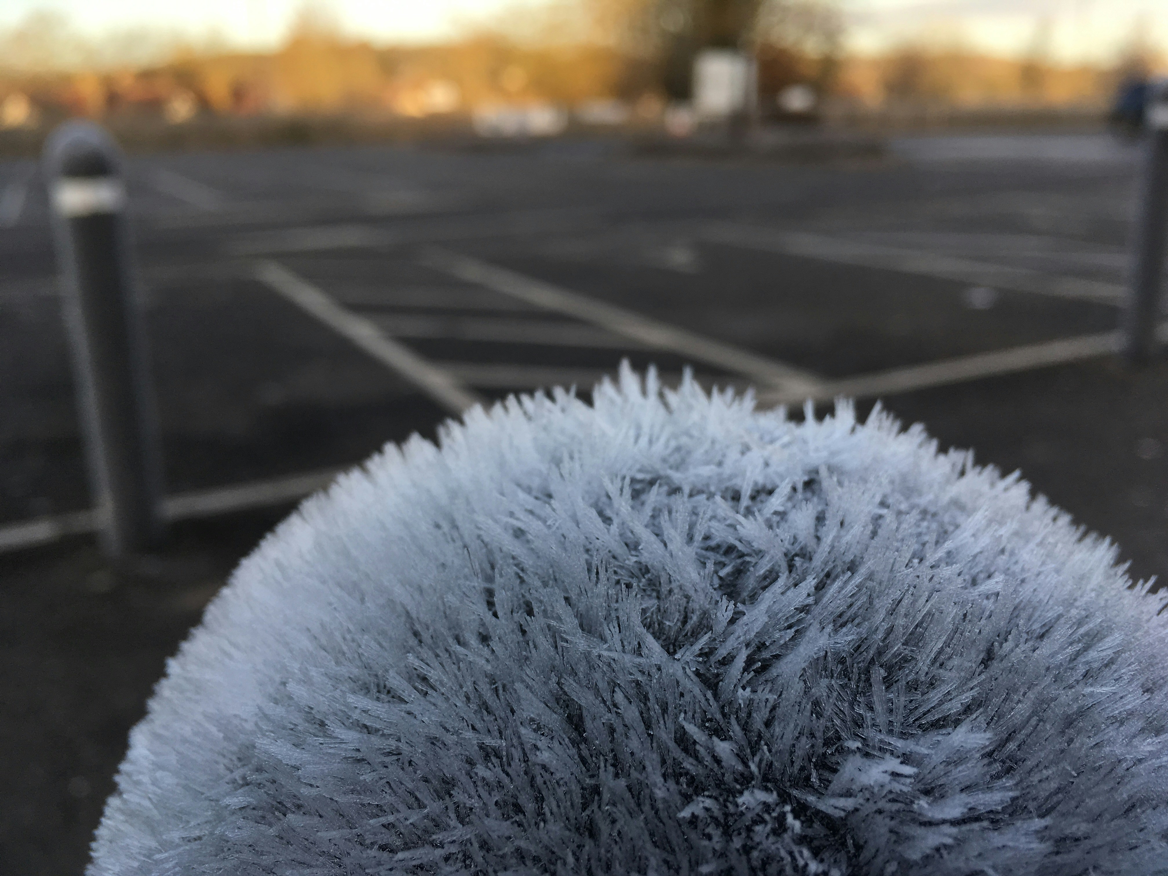 I was walking into the store one cold day when the ground had defrosted and the sun was shining and along the road was all these parking bollards all with a one off show of ice crystals that would soon vanish forever.