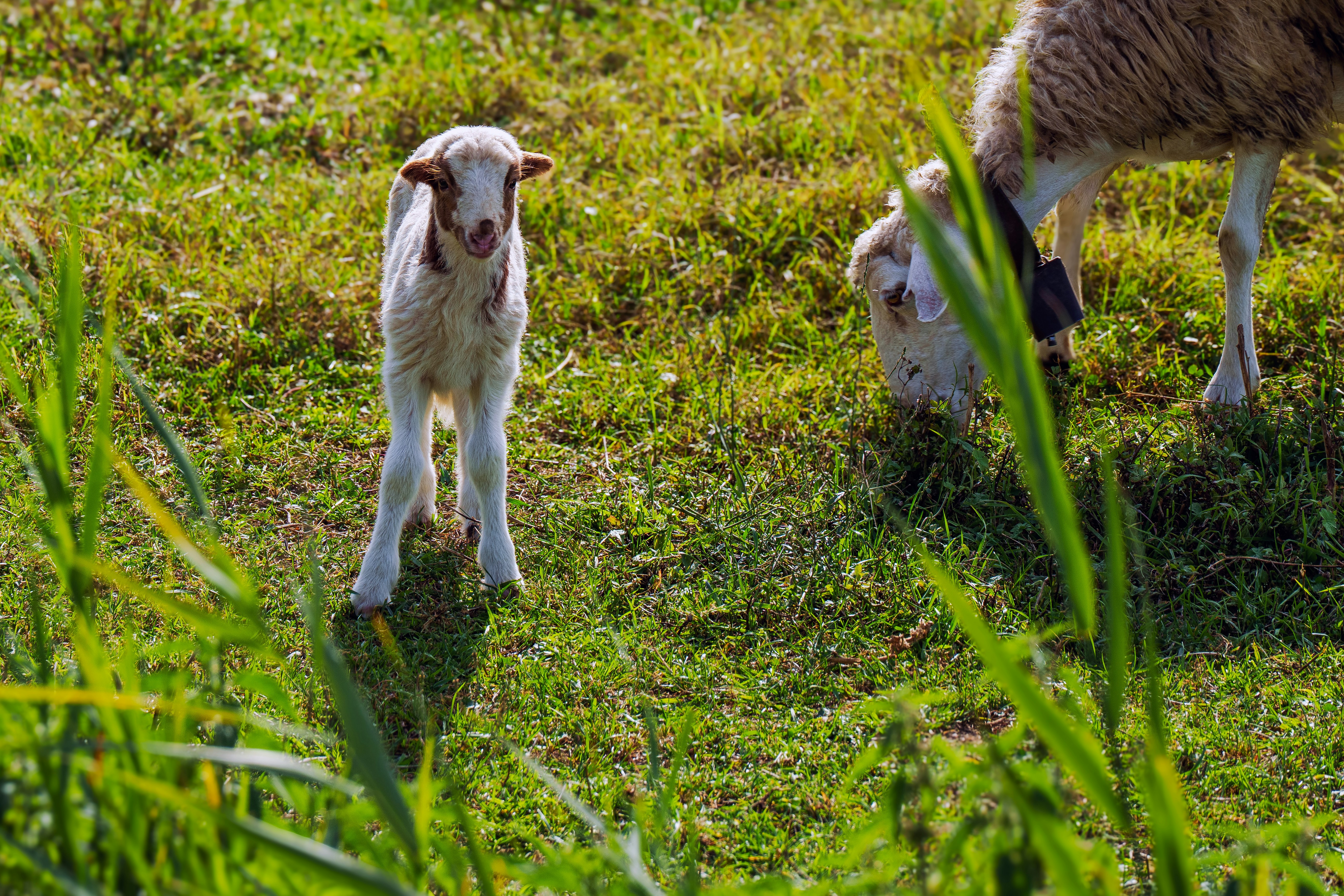 A little sheep with its mother