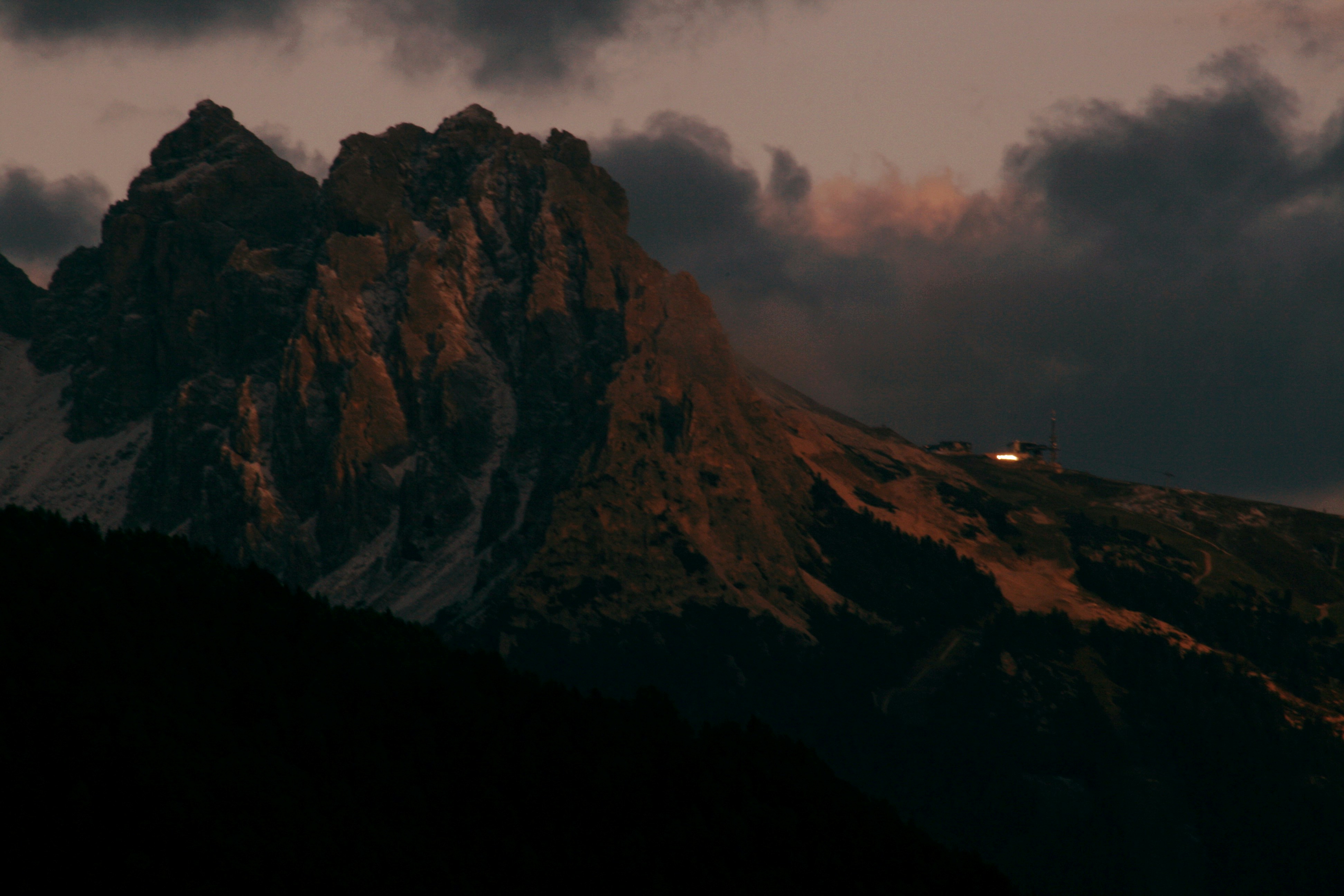 The mountain hit the sky when the sunset happing in the Alps