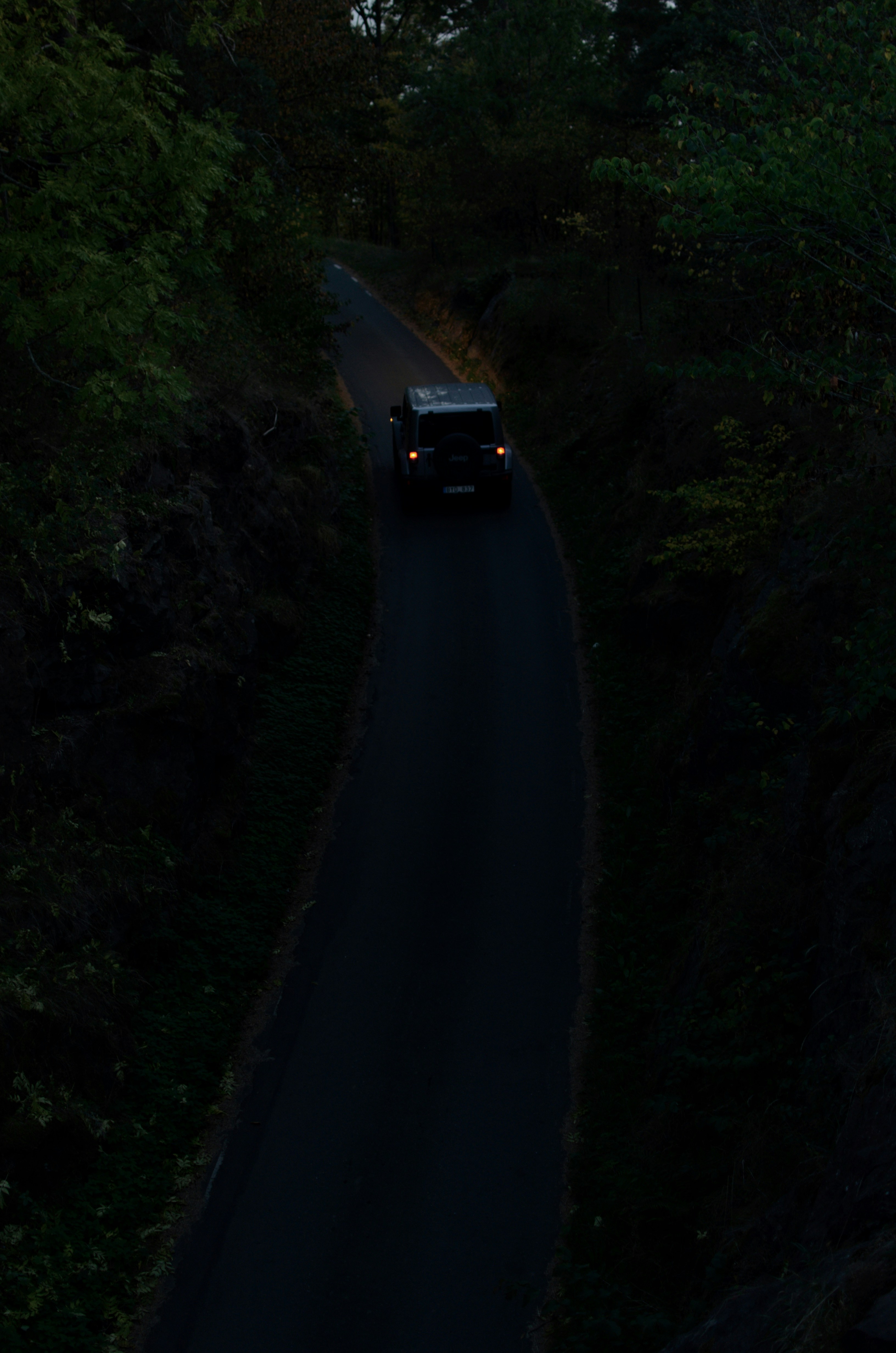 Lonely car on a narrow road