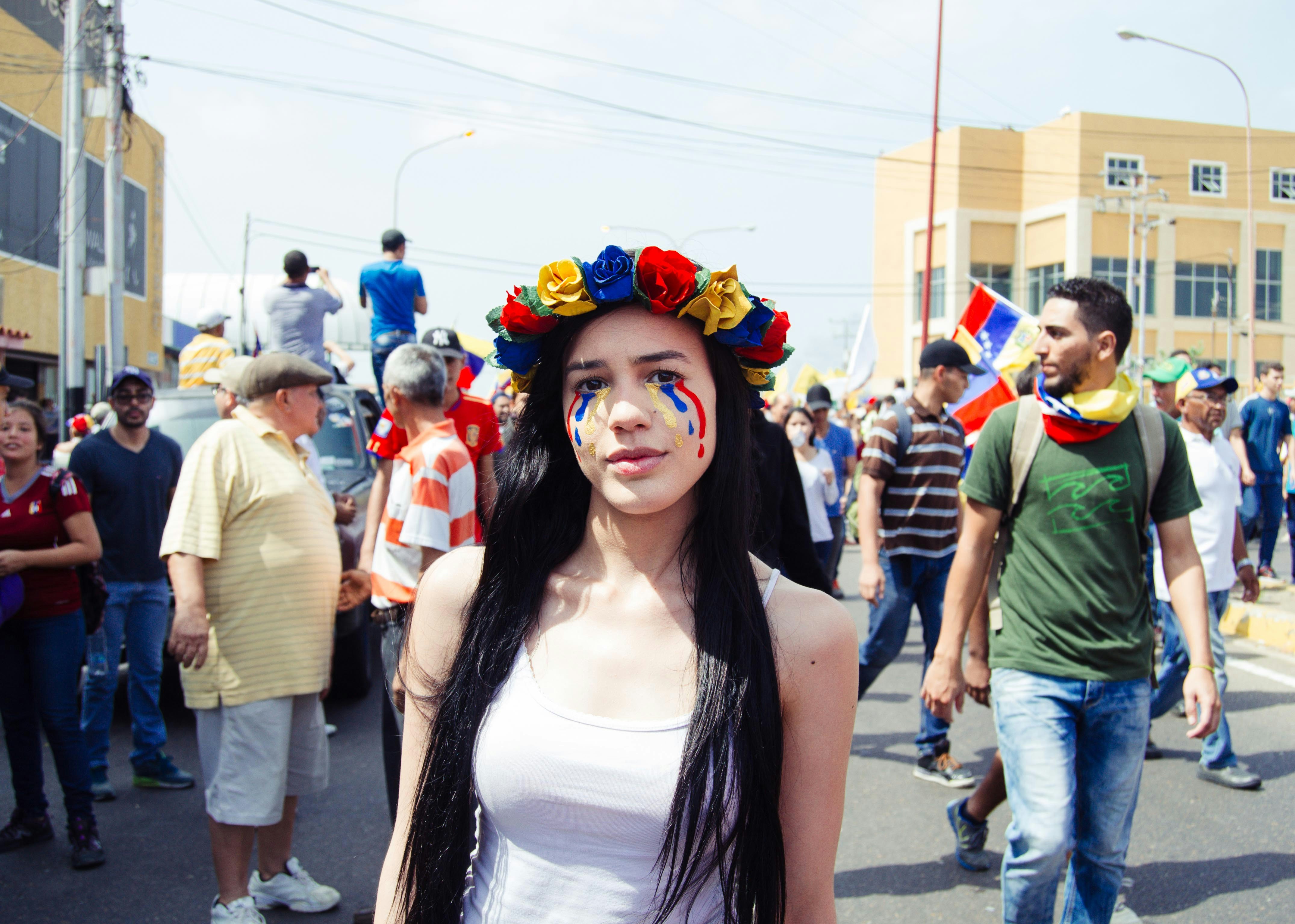 En una manifestación local contra al gobierno que preside en Venezuela. Me conseguí a una chica con una creatividad que llamó mucho mi atención, el cual me enseñó que no se necesita alguna cualidad o estereotipo para luchar por la causa que defendemos.