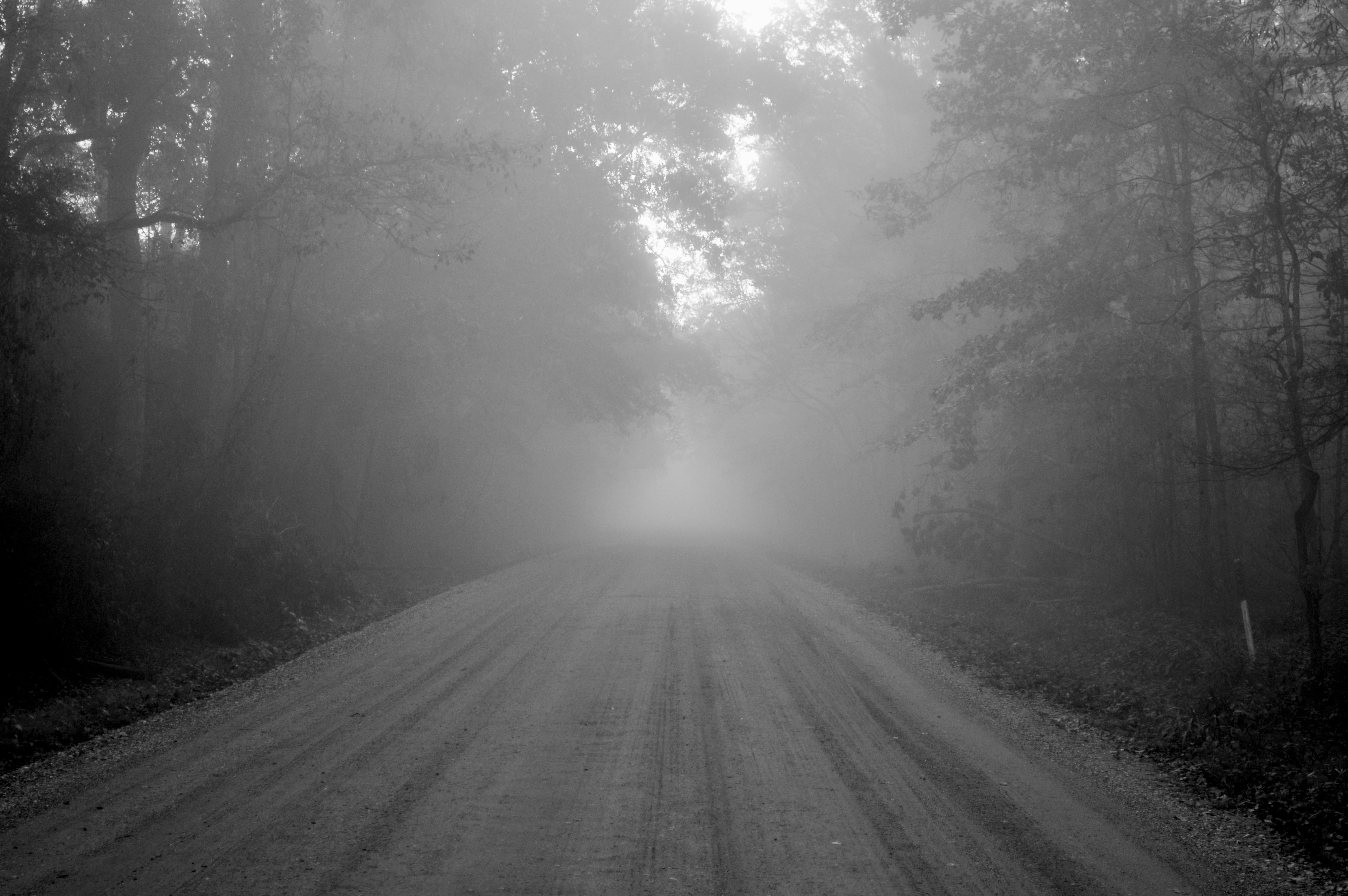 There is a little island near Monroe, Louisiana, where the bayou curls around a piece of earth in such a way that it is only accessible by bridge. Here is a photo to the entrance of this unique place with the early morning fog has yet to awake and rise from the surface.