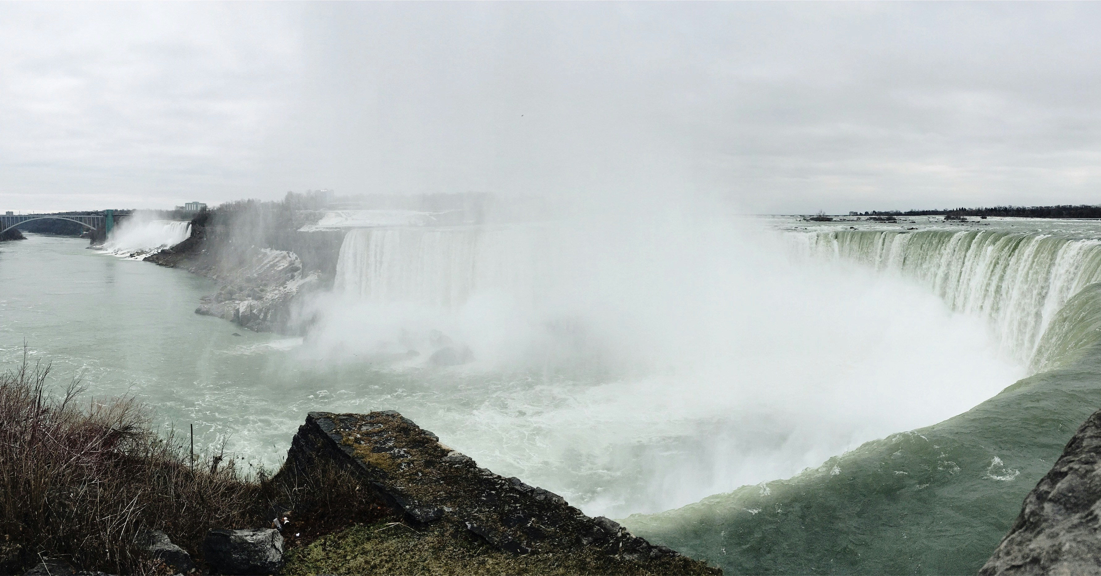 I had just walked along the river, above the falls, when I had come up to the upper level observation deck of the Horseshoe Falls. The cool mist hitting my face mixing with the freezing air and the pounding of the water plummeting over the falls made me feel on edge. But, right as it was about to go over the falls it almost felt as if it was in slow motion. The loud sound of the water plunging over the falls almost didn’t match the water cascading over the edge. It was mesmerizing and made me feel as if I was in another world away from the tourism centered city of Niagara Falls.