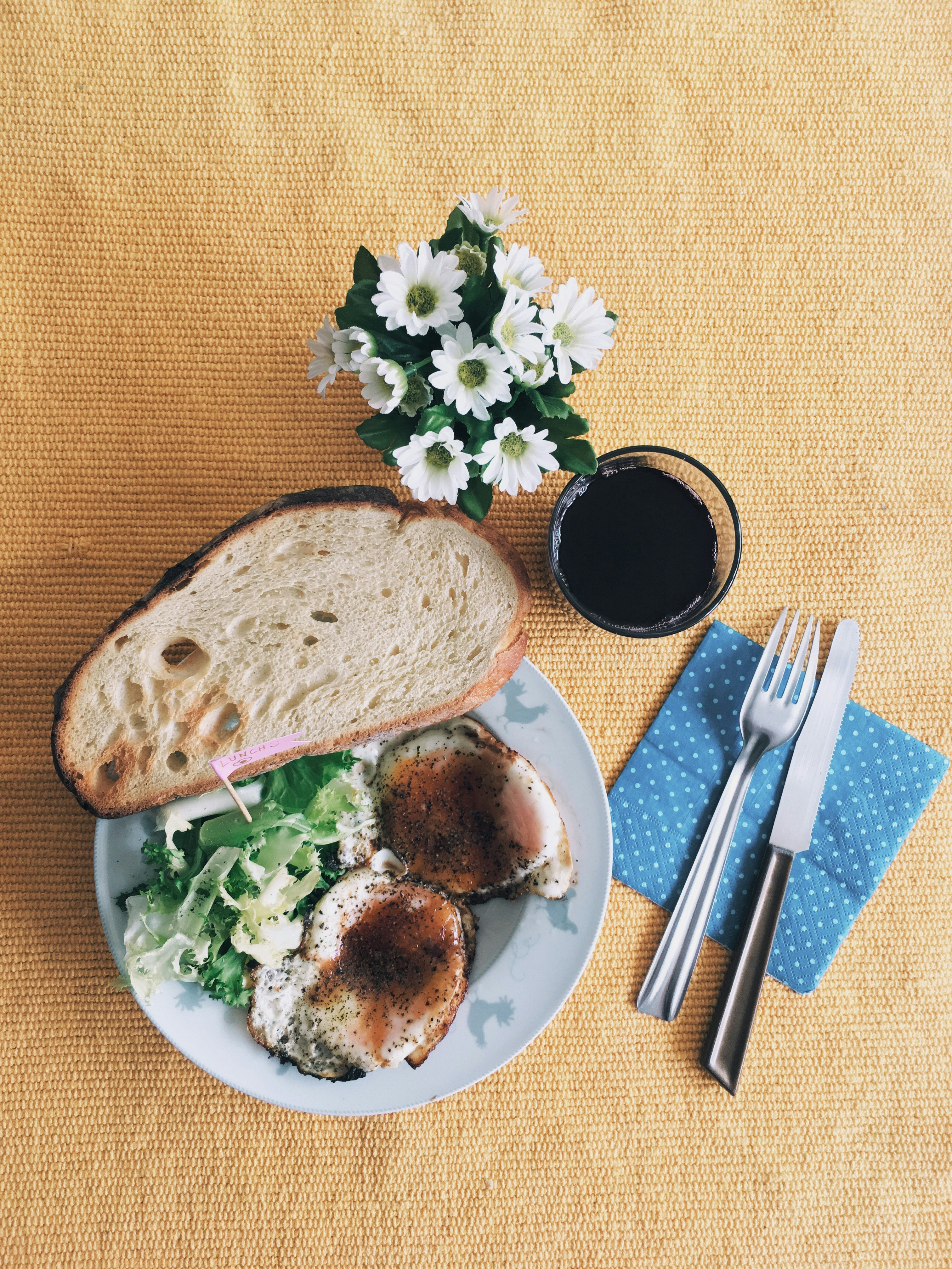 I was so hungry but I didn’t any can cook fast. Open the refrigerator TADA!!! Eggs, bread and salad so I decided to make this!! Make more energy for after noon and also good for breakfast ;)
