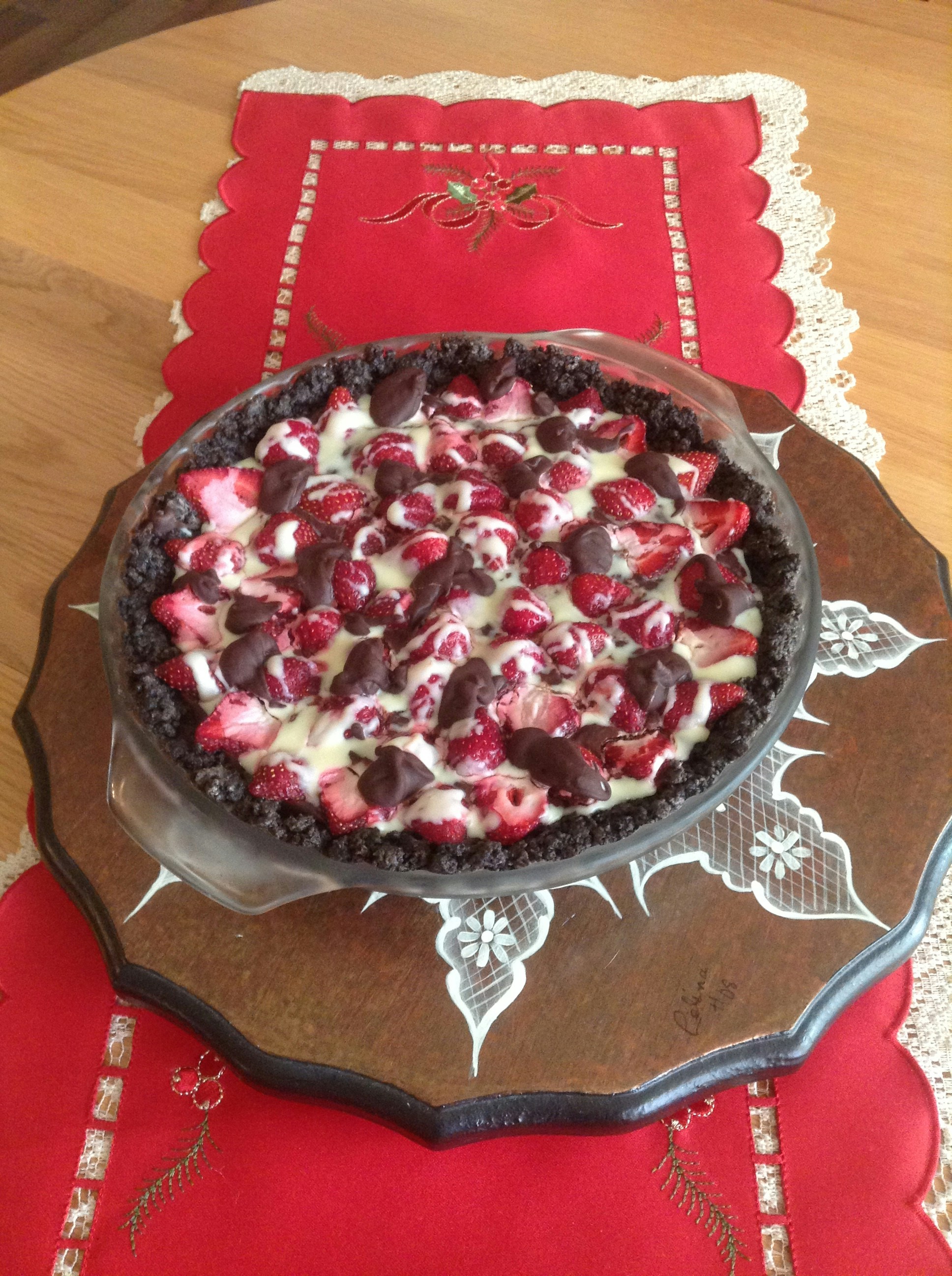 Its delicious strawberry tart with three chocolates