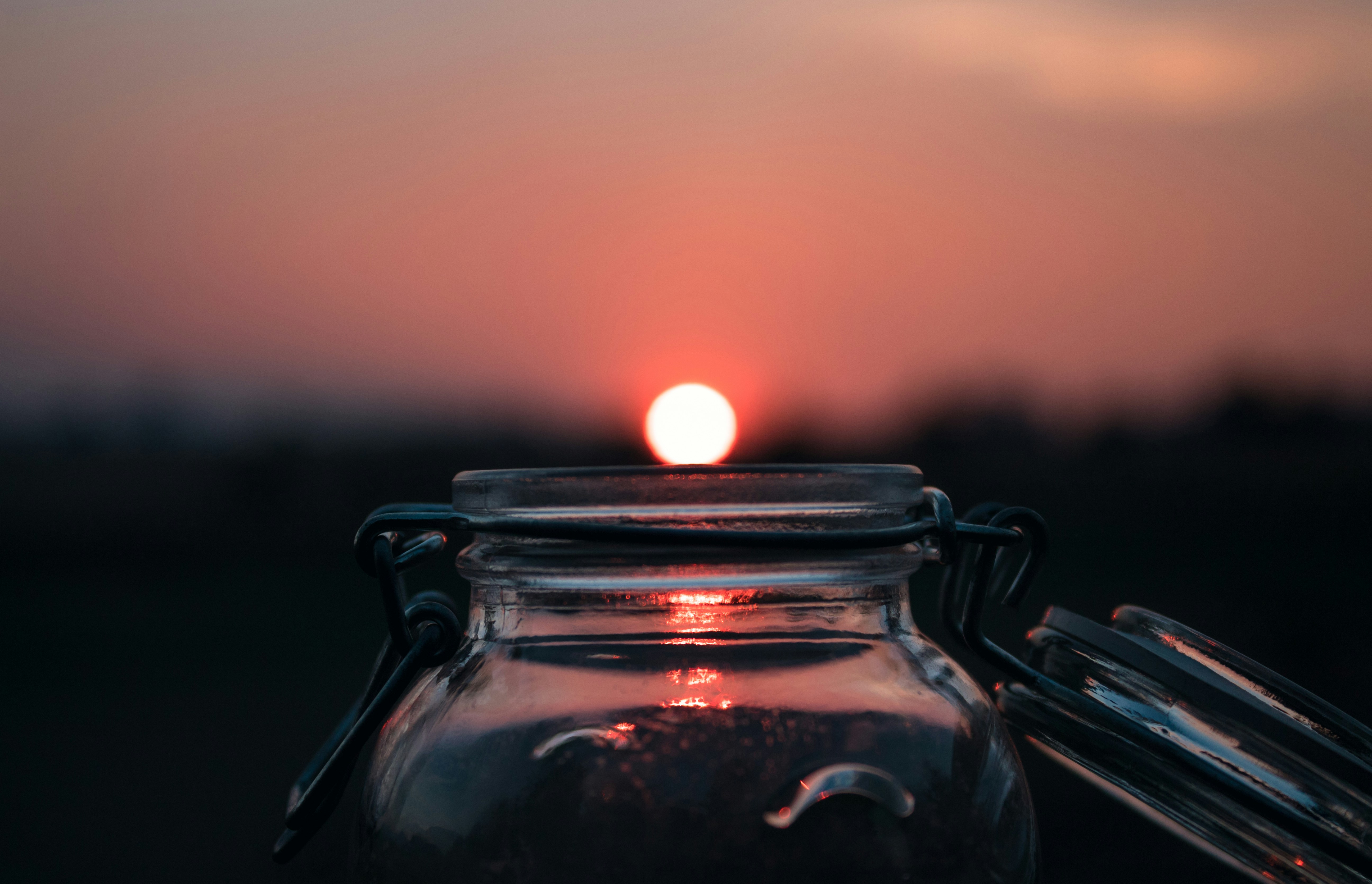 Durante un atardecer cerca de la casa de un amigo, el sol se ocultaba de una manera majestuosa, así que con una botella que me regaló mi novia, decidí crear ese efecto de que pareciera que se ocultaba el sol en mi recipiente
