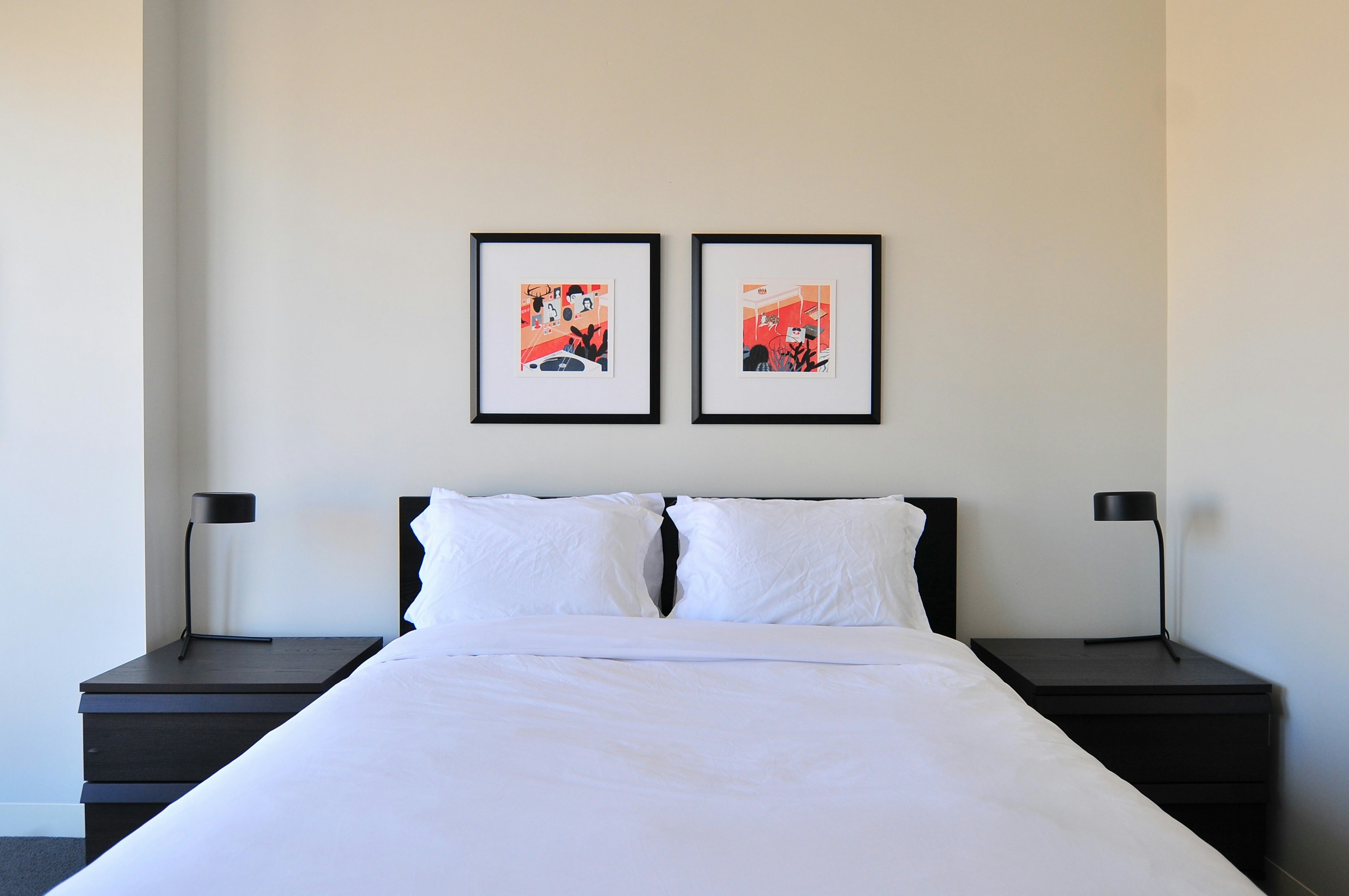 I took this shot after hanging these two artworks by Tekuma artist Jun Cen. Jun is based in NYC, and has done a lot of editorial work for publications and newspapers like the New York Times. Editorial illustrations are always interesting to look at: they tend to have a strong narrative behind the drawing. It’s like reading a story before hopping in bed.