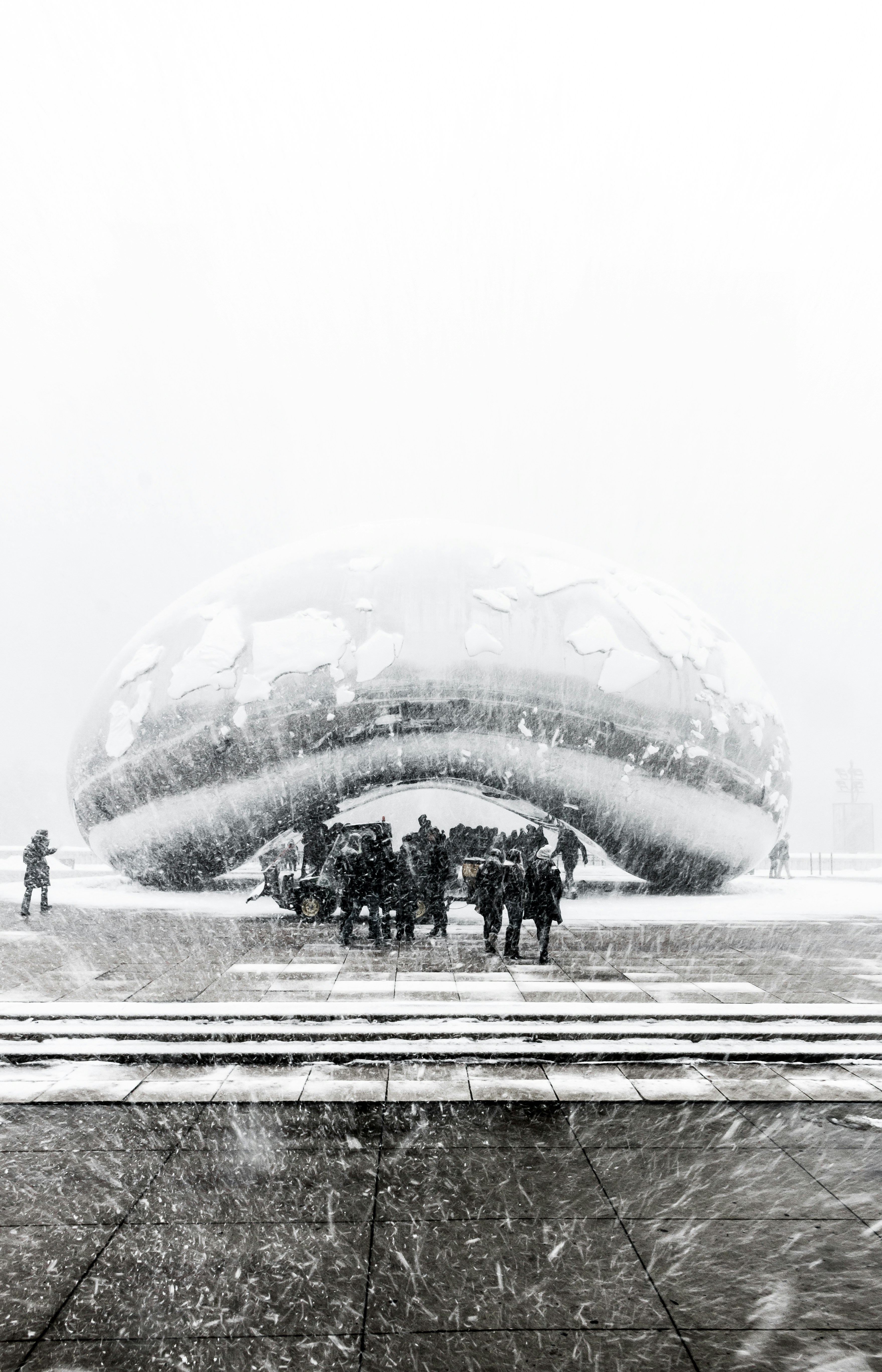 March 14, 2017. A huge lake effect snow band came through Chicago. I was out photographing and it started to snow so heavy that I couldn’t see beyond a block. I immediately started heading east because I knew I wanted to get a shot of Cloud Gate (The Bean).