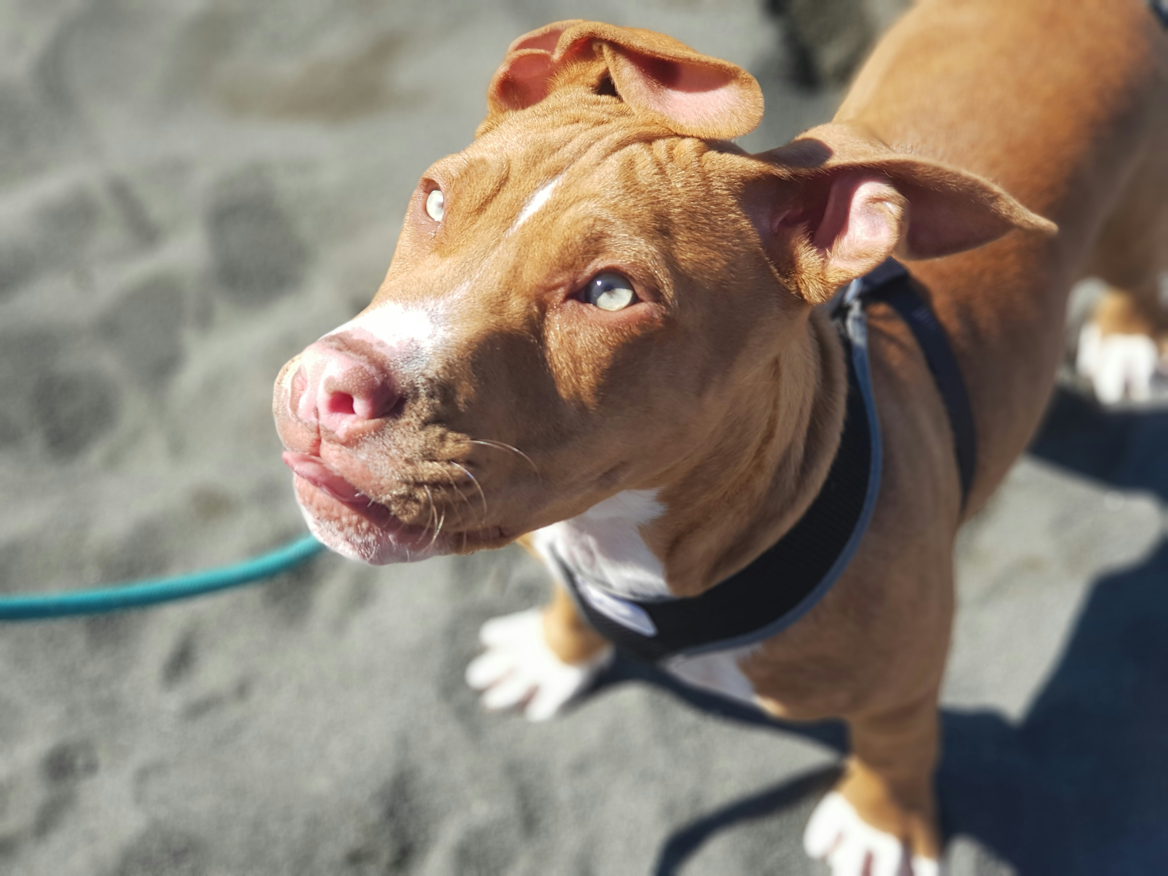 Dachshund dog walking on a beach