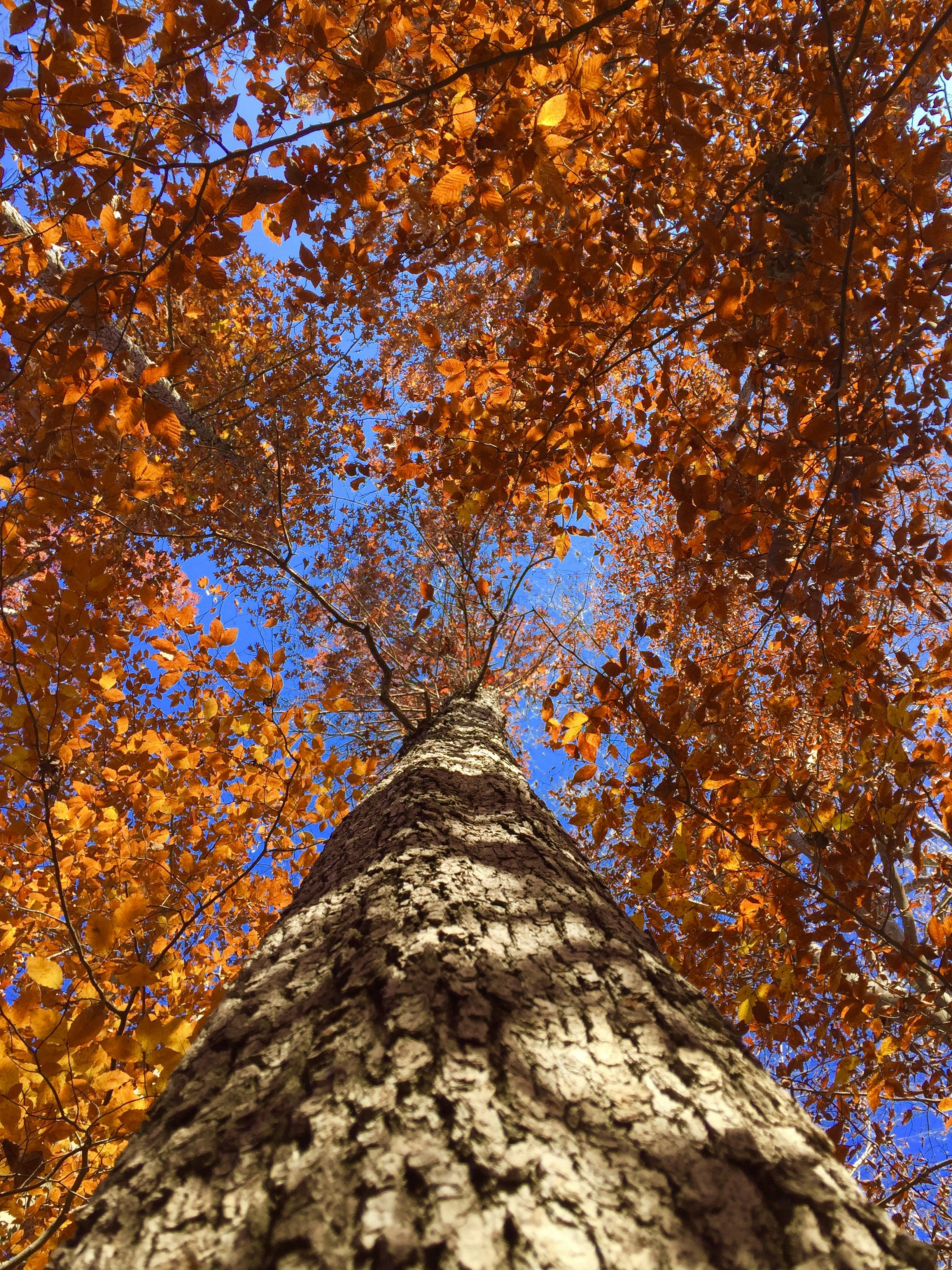 My wife and I decided to adventure out into a new trail. The air was beautifully dry and a small breeze accompanied us like a friend. As we walked through the trail with the crunching of orange, red, and yellow leaves below us, I came to a tree, put my hand on it, and something within me was compelled to just look up. Seeing the blue sky make its way through the colors of fall left me in awe. I forgot about everything in that moment, and I was taken to a place of tranquility and peace in my mind. I thought a picture would allow for others to experience the same delight and joy that I did.