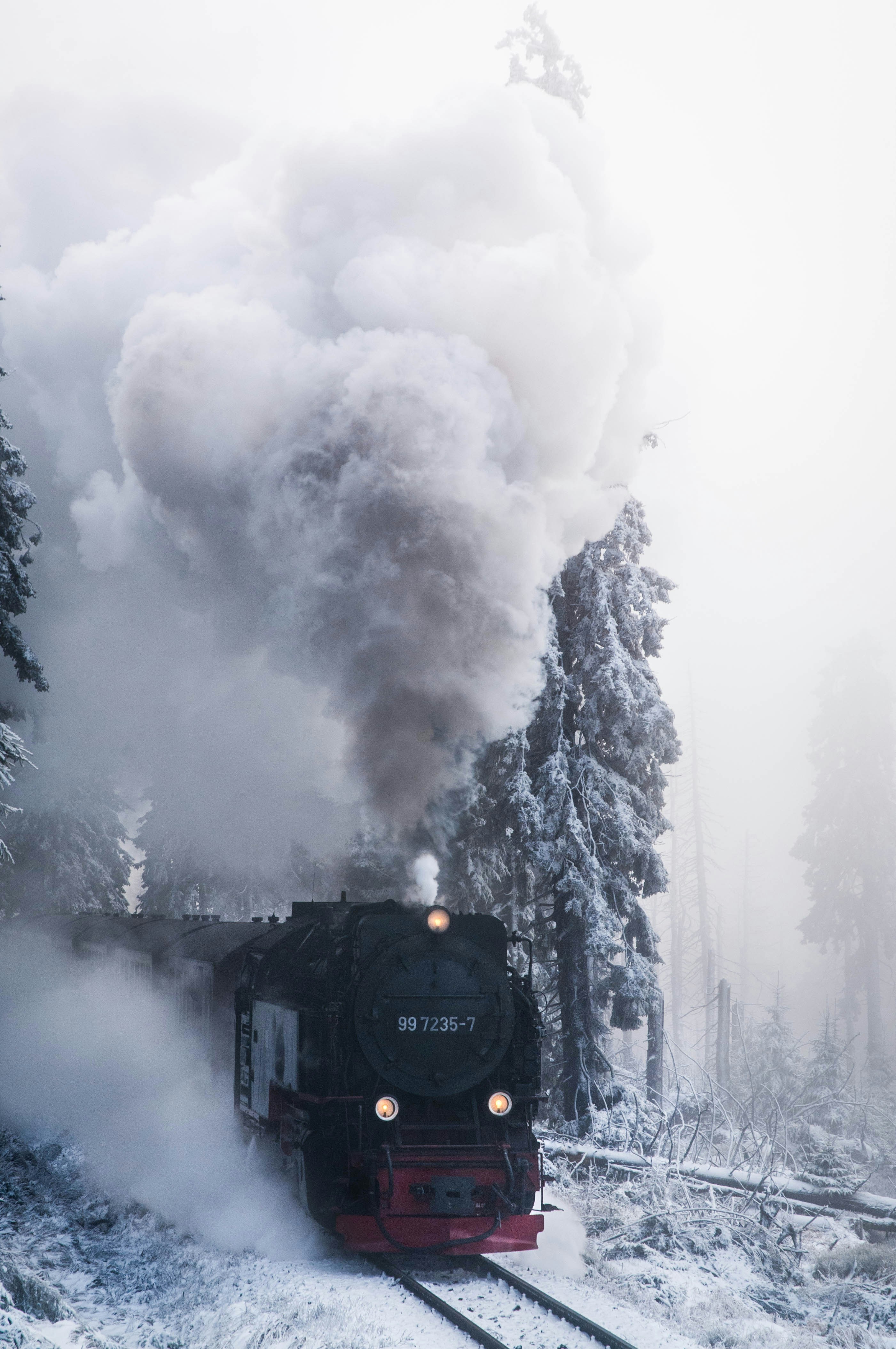 After hiking all the way up to the brocken, we decided to take the train back down, since the hike up was super slippery and foggy. On the way back, the train stopped at this beautiful location to let the other train on its way up pass. It seemed like some magical train to winterwonderland that appeared through the foggy forest and disappeared into the fog again.