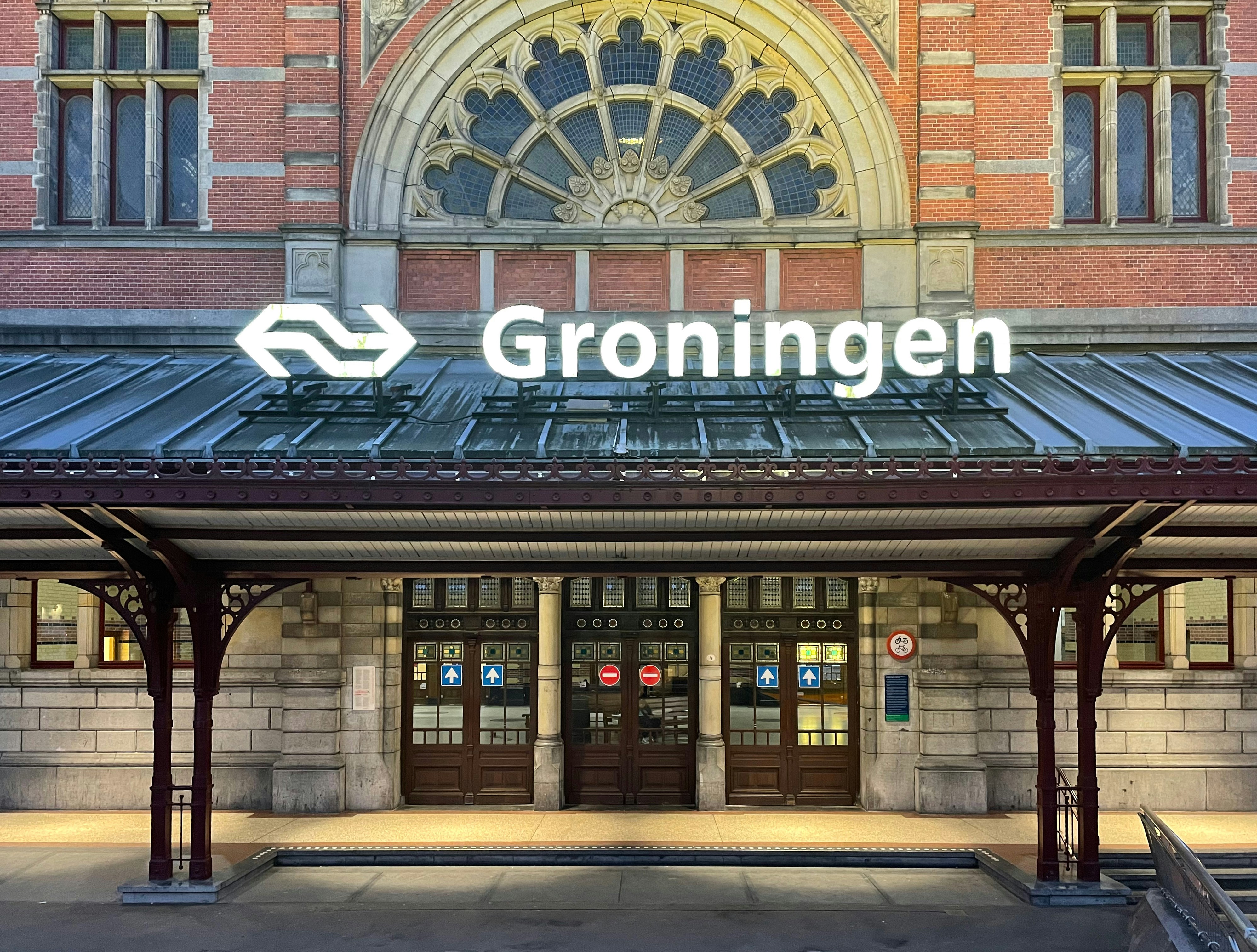 Groningen railway station building entrance.