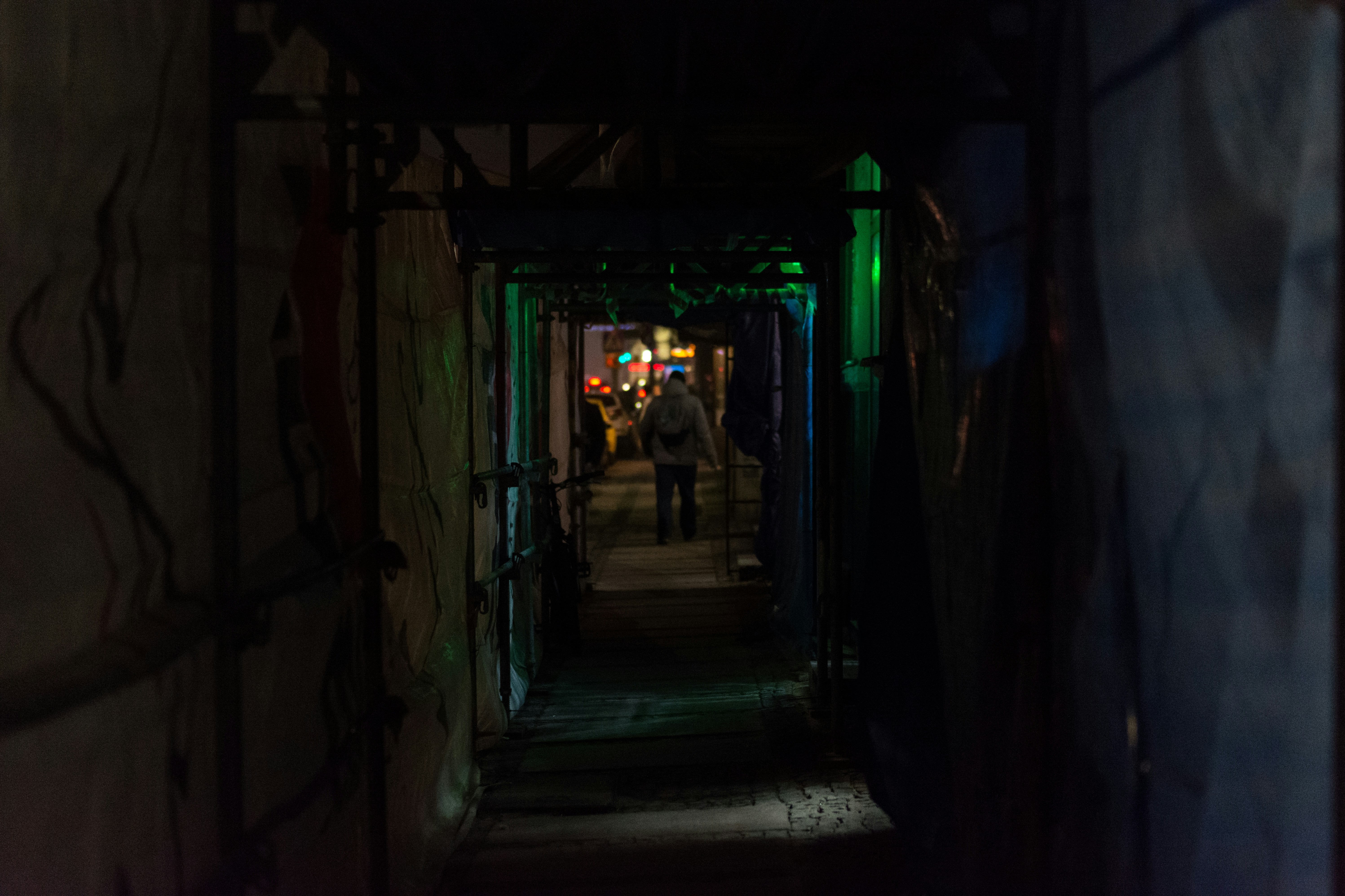 I was walking home under scaffolding. I saw the lights and took photo of it.