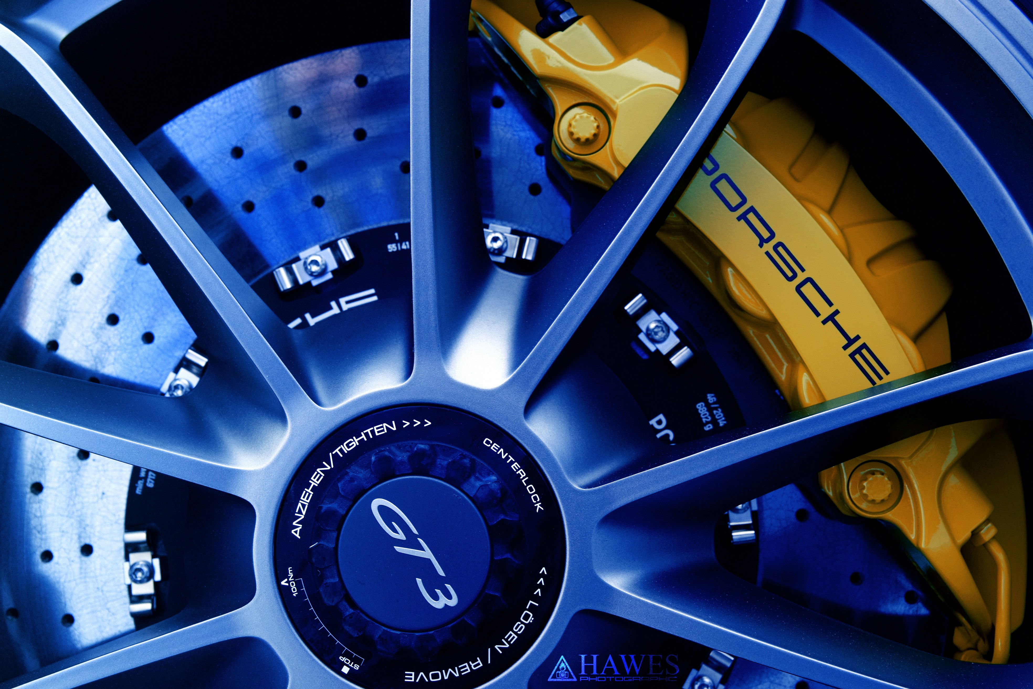 Shot this at work, needed something two toned Blue/gold, post-processed to achieve the look I wanted. These brakes is a $9,000 option on a Porsche 911.