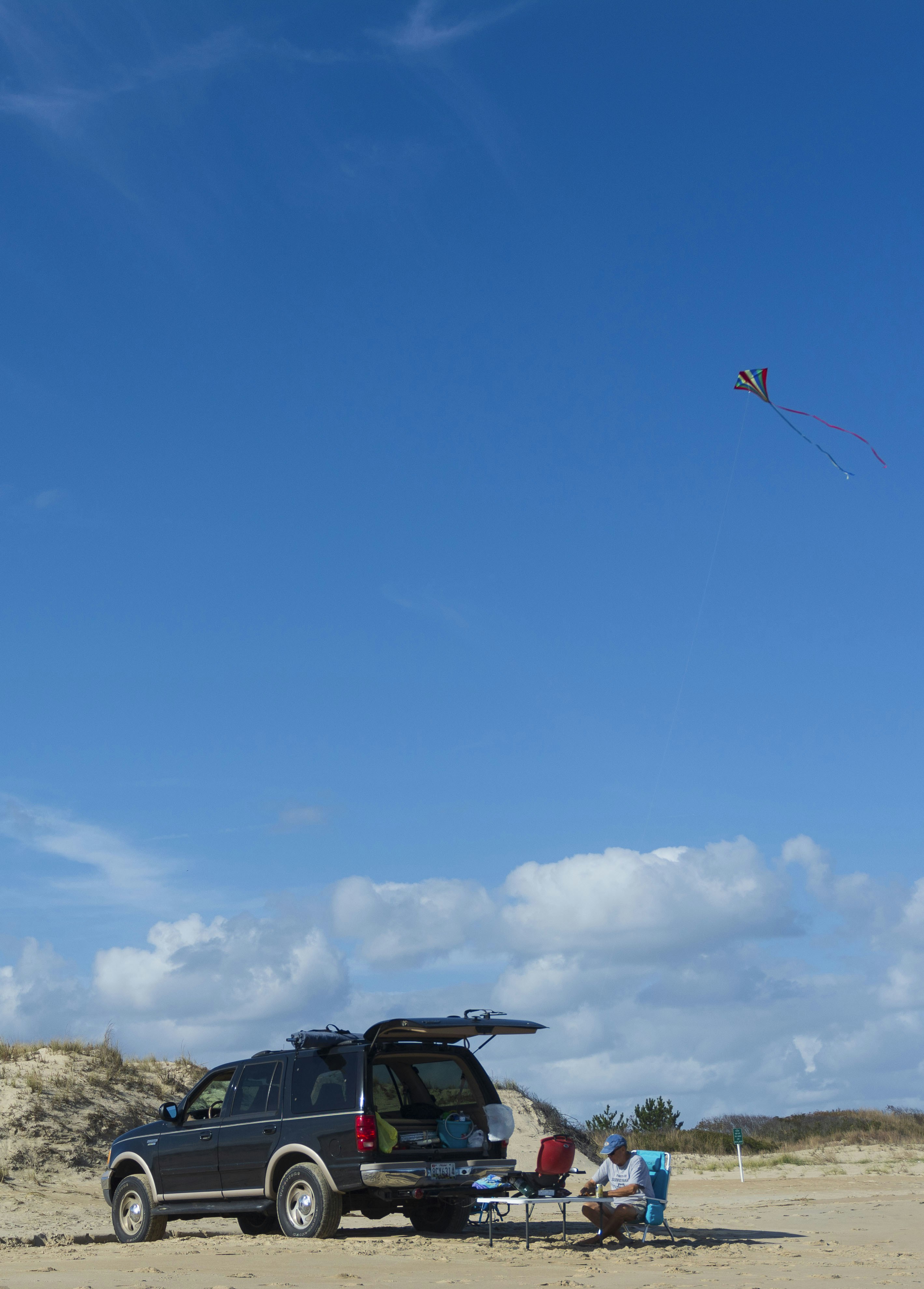 Flying a kite near a truck