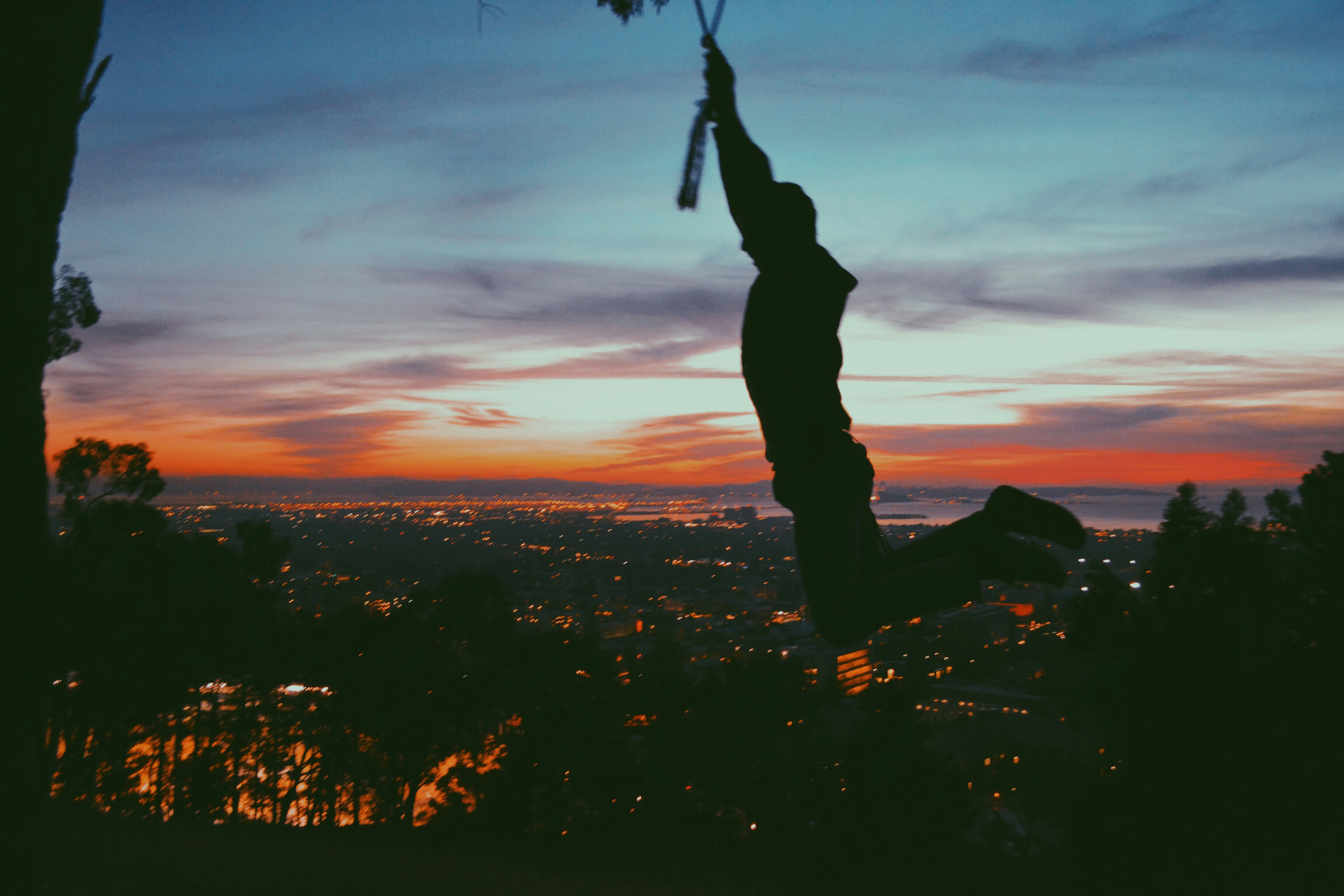 This is my friend David swinging above the sunset in Berkeley CA.