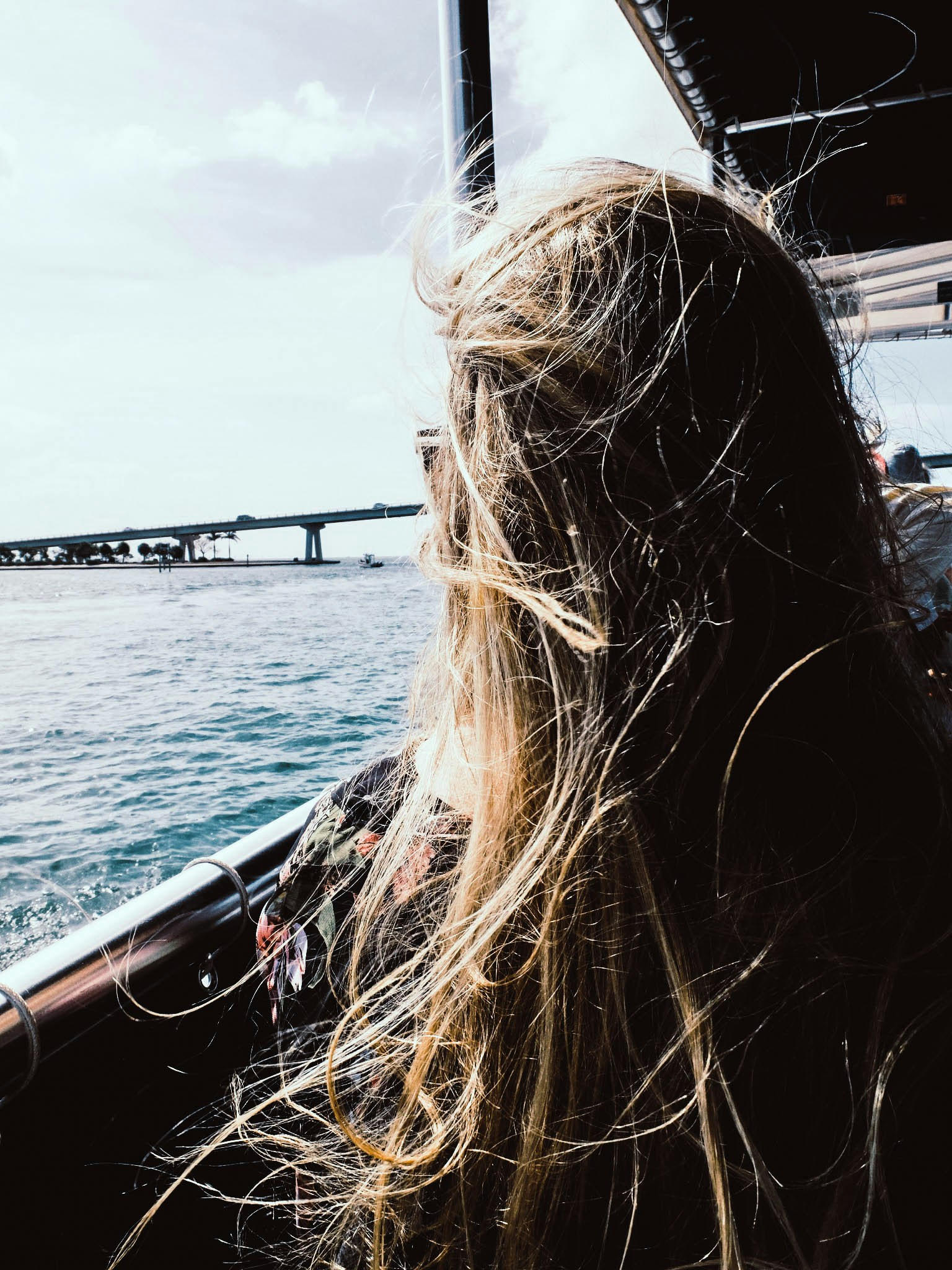 My wife and I on a boat to Ft. Myers beach in Florida.