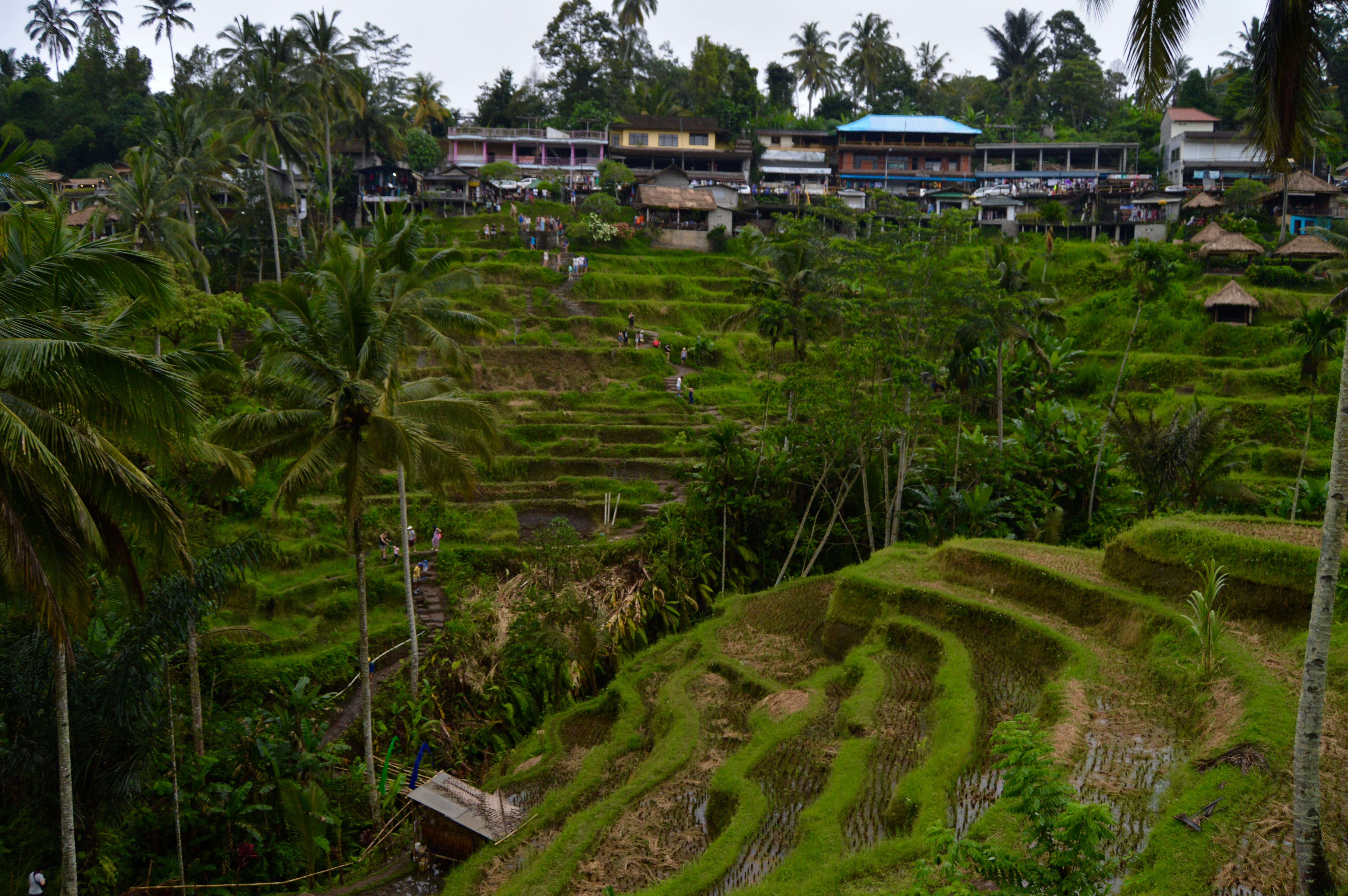 These are the famous Tegalalang rice terraces located in Ubud, Indonesia on the island of Bali.