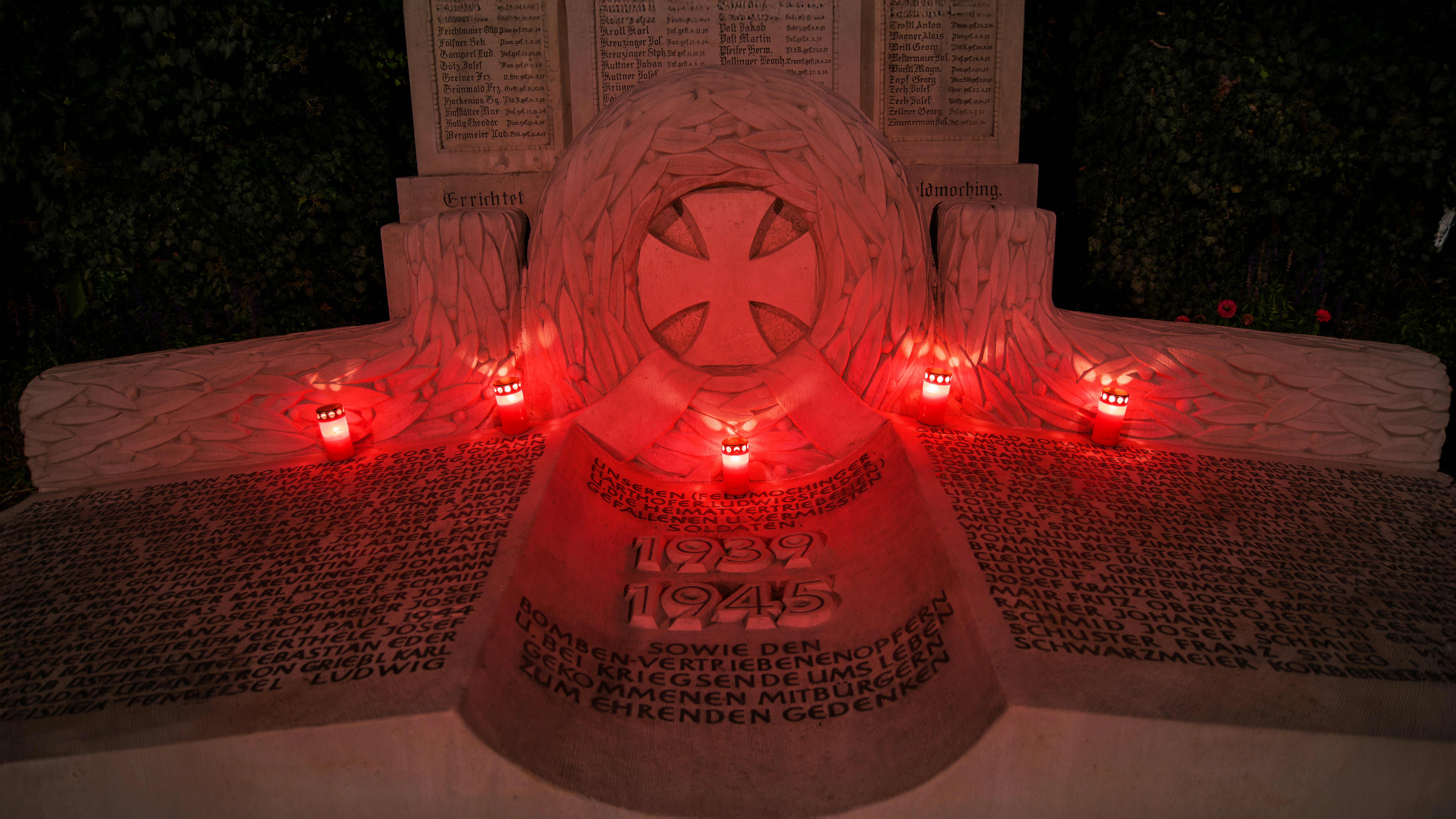 Ein Kriegerdenkmal in München, aufgenommen bei Nacht