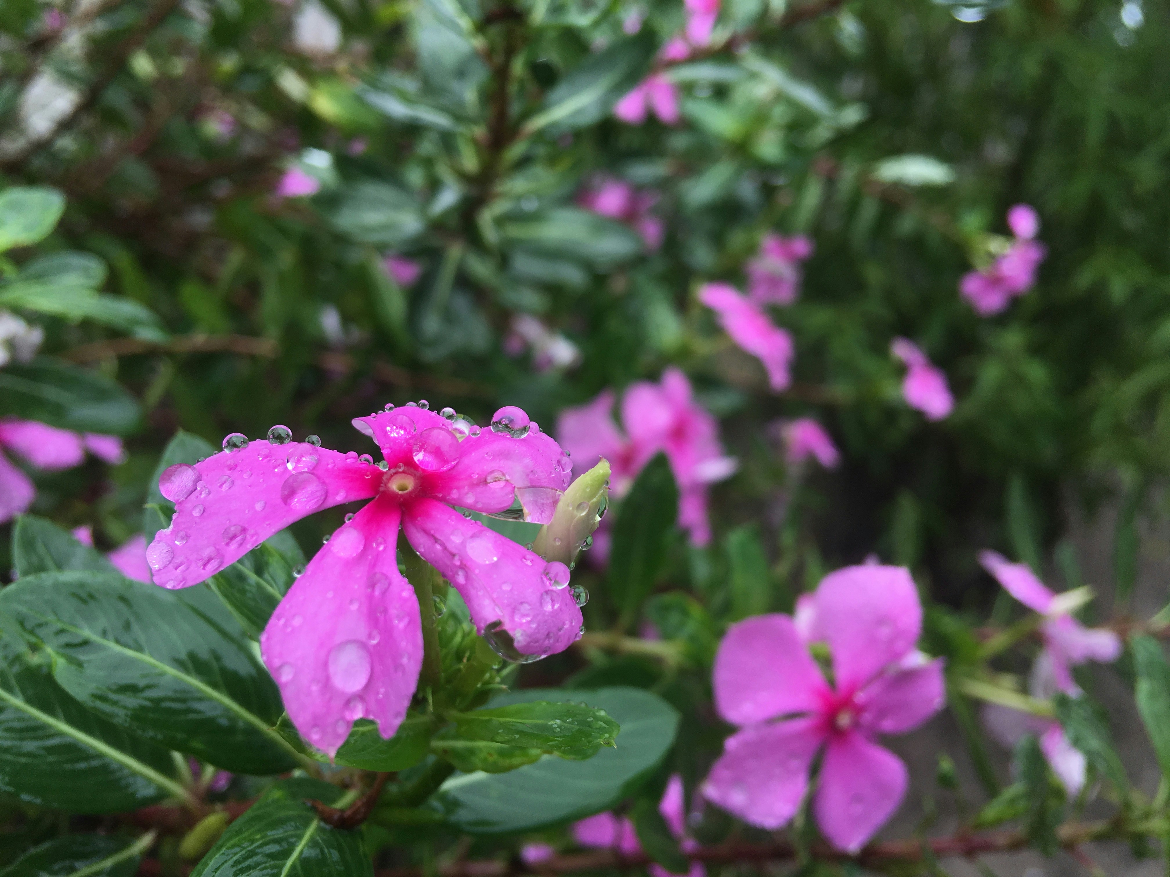 It had been raining for 3 days straight. It was starting to be burdensome to walk into town and be wet the entire day. As I set out to run some errands, I noticed some bright flowers and took this photo. These are both symbolically and literally beauty in the rain.