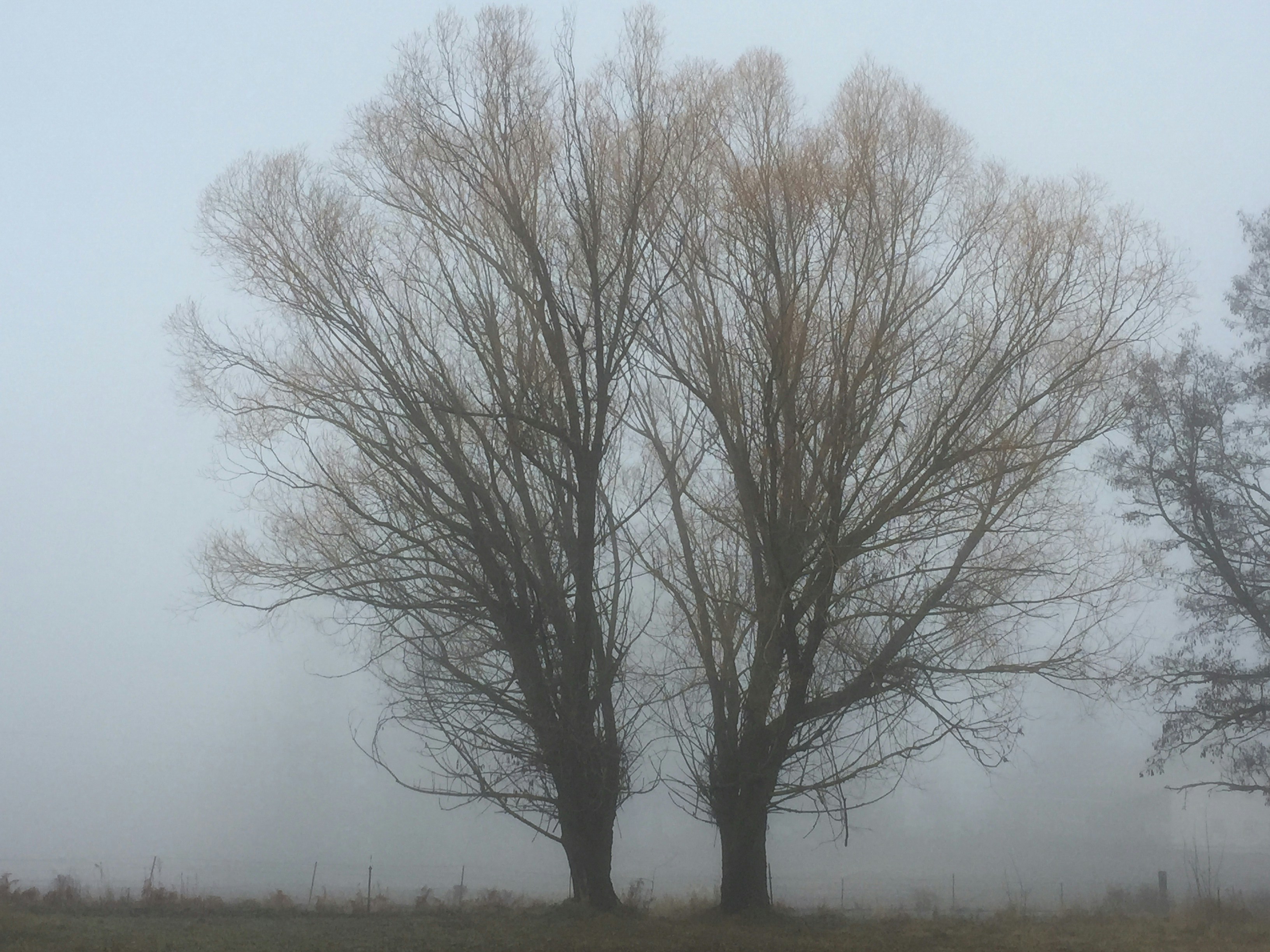 Tree silhouetted by the fog